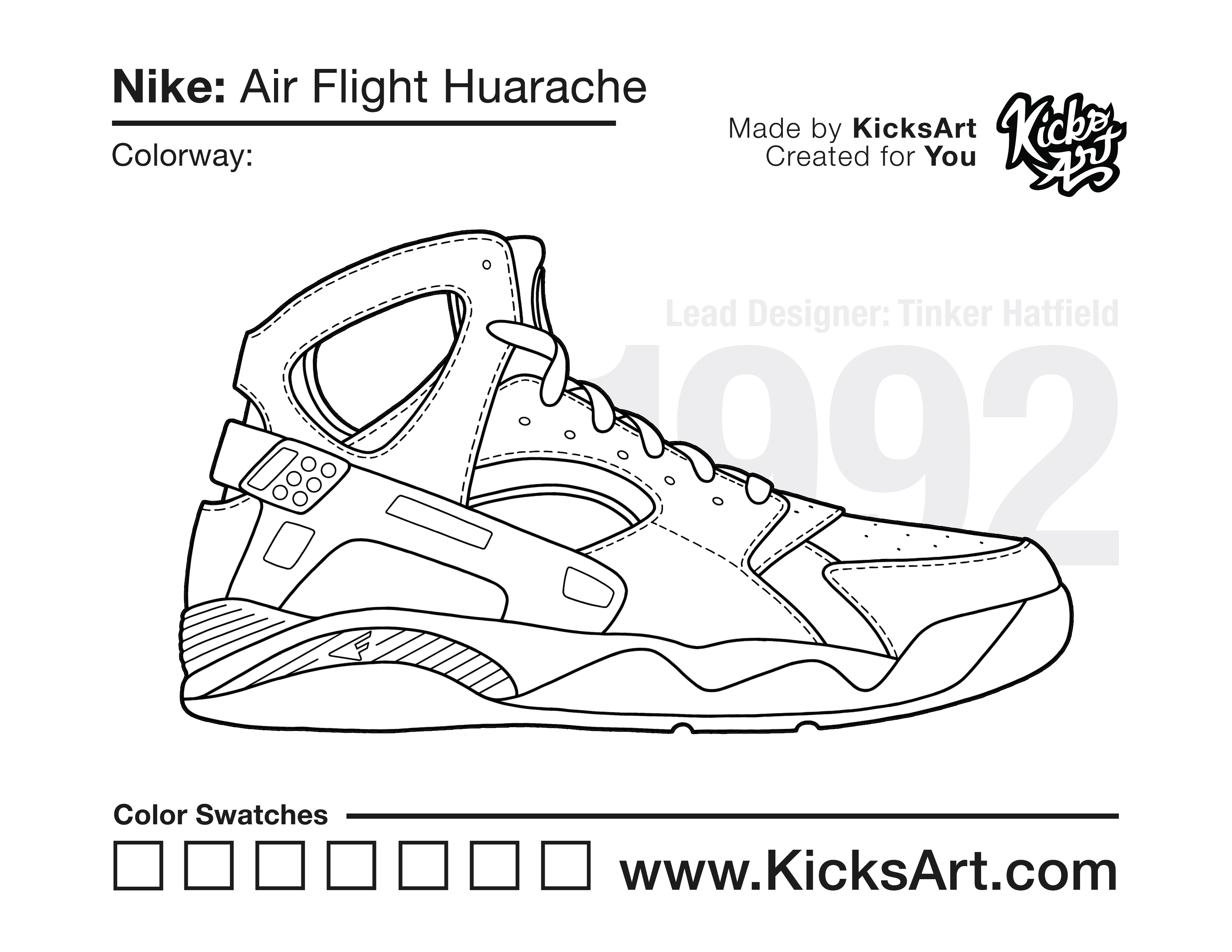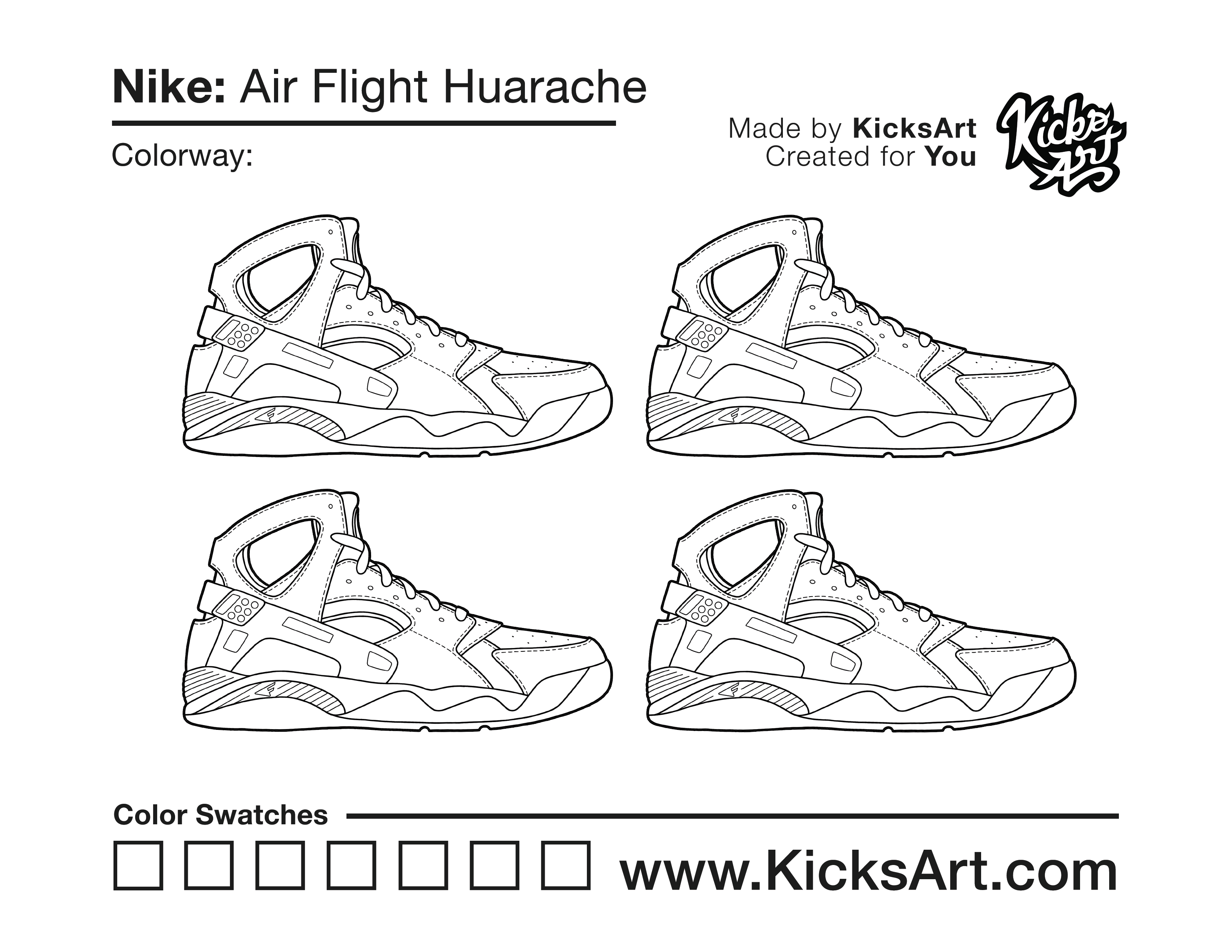 Nike Air Flight Huarache Coloring Pages July 5, 2021 kicksart05 For any sneaker coloring page, click on the button above the image to start the instant download! FREE Download: Nike Air Flight Huarache Art materials can be expensive!Try out colorways on these smaller templates so your supplies can last longer! Nike Air Flight Huarache (4UP)