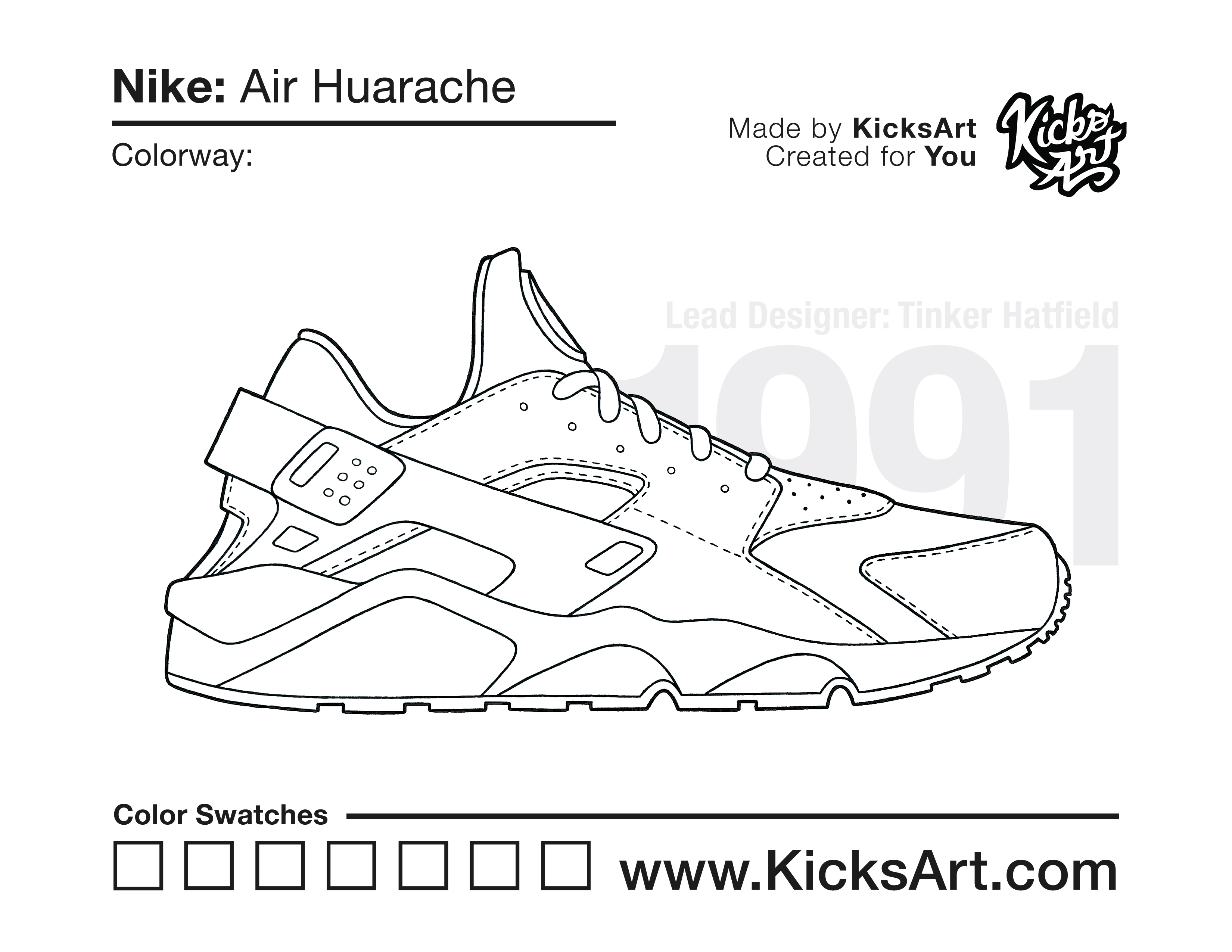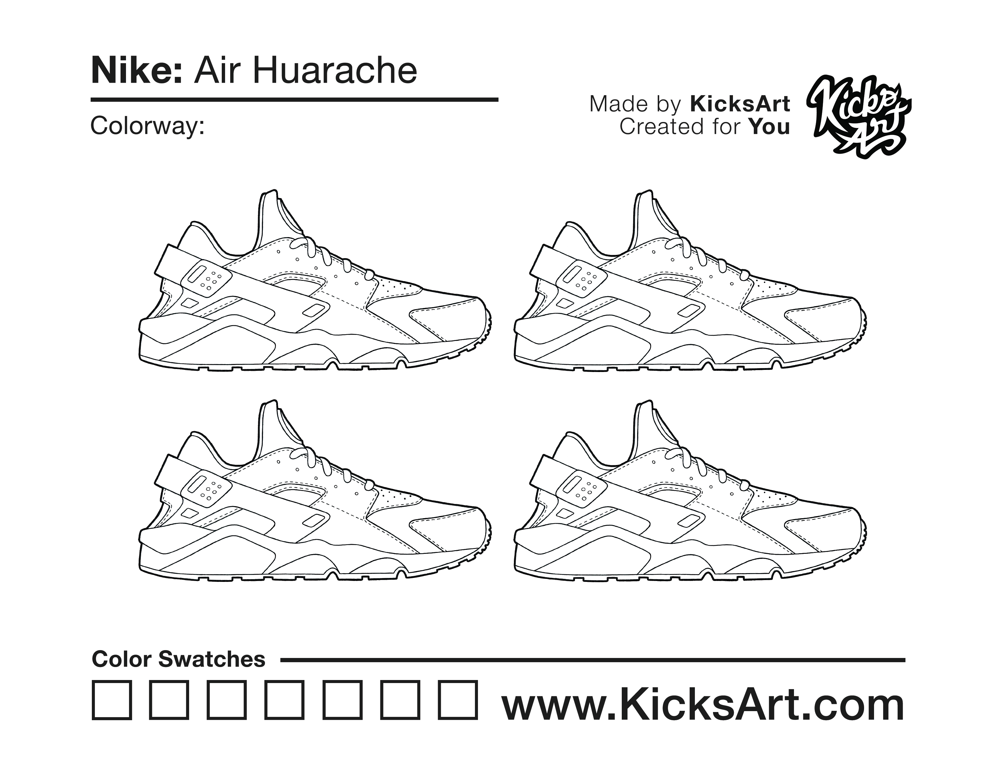 Nike Air Huarache Sneaker Coloring Pages March 13, 2019 kicksart05 For any sneaker coloring page, click on the button above the image to start the instant download! FREE Download: Nike Air Huarache Art materials can be expensive!Try out colorways on these smaller templates so your supplies can last longer! Nike Air Huarache (4UP) Nike Air Huarache (Drawing Guide) Drawing Guide (Page 2)