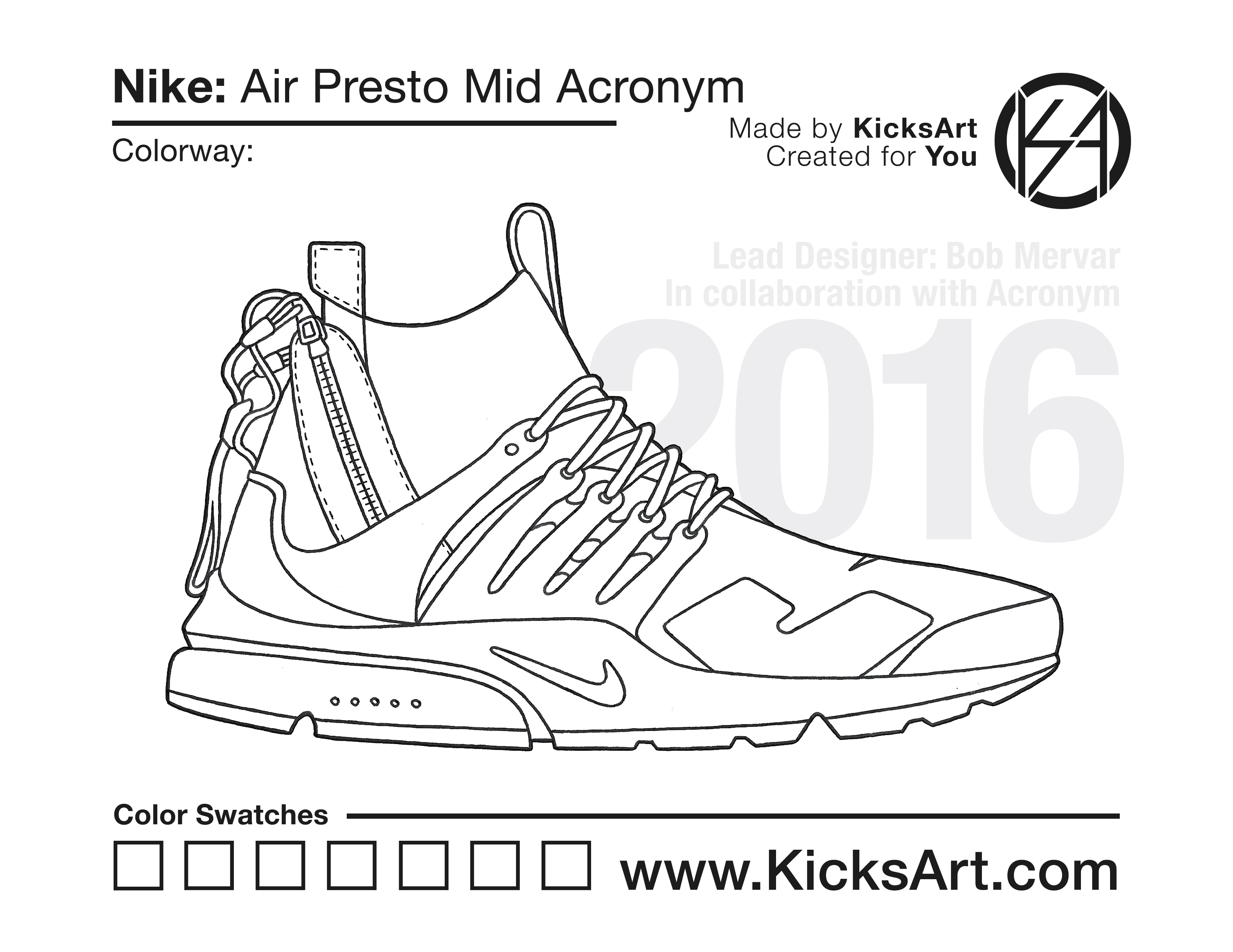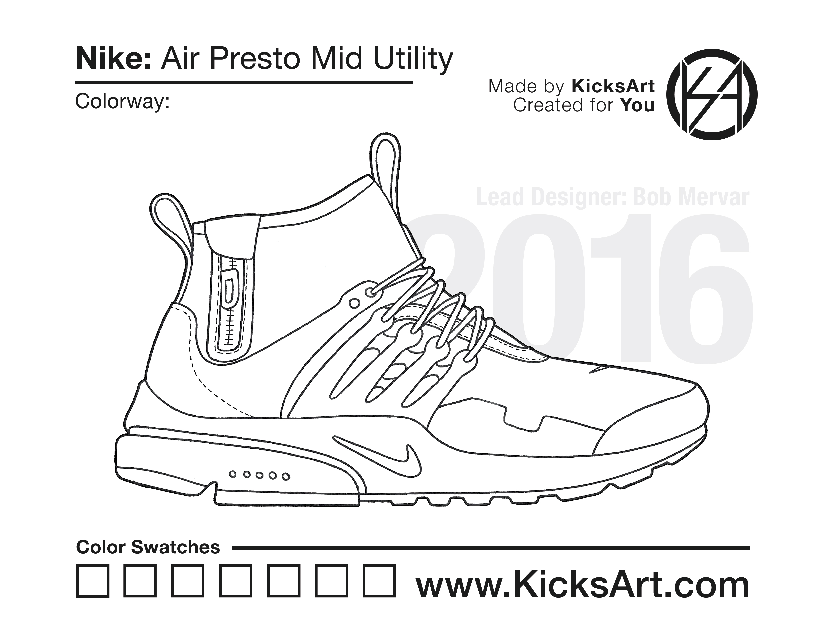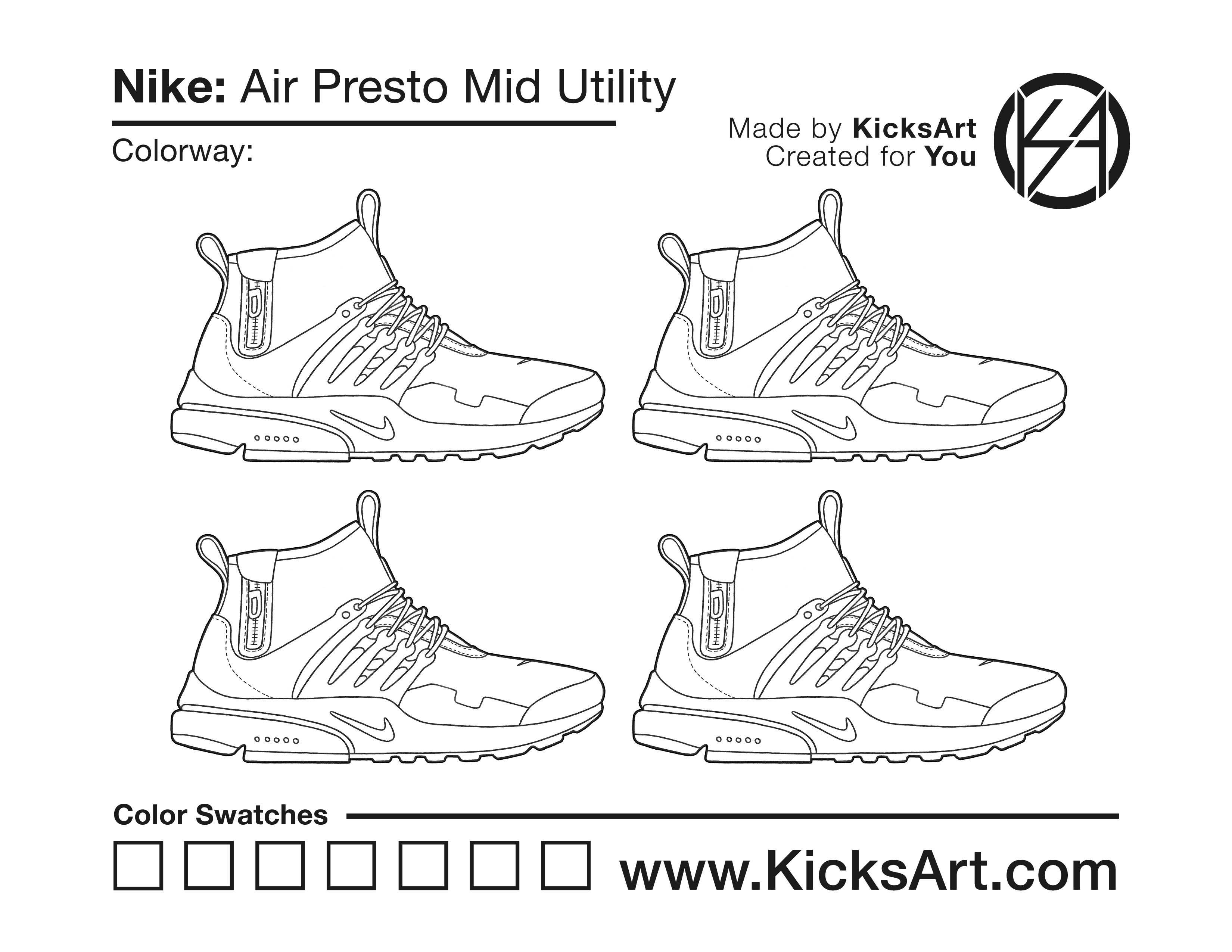 Nike Air Presto Mid Sneaker Coloring Pages March 13, 2019 kicksart05 For any sneaker coloring page, click on the button above the image to start the instant download! FREE Download: Nike Air Presto Mid Art materials can be expensive!Try out colorways on these smaller templates so your supplies can last longer! Nike Air Presto Mid (4UP) Additional Variants Nike Air Presto Mid Acronym