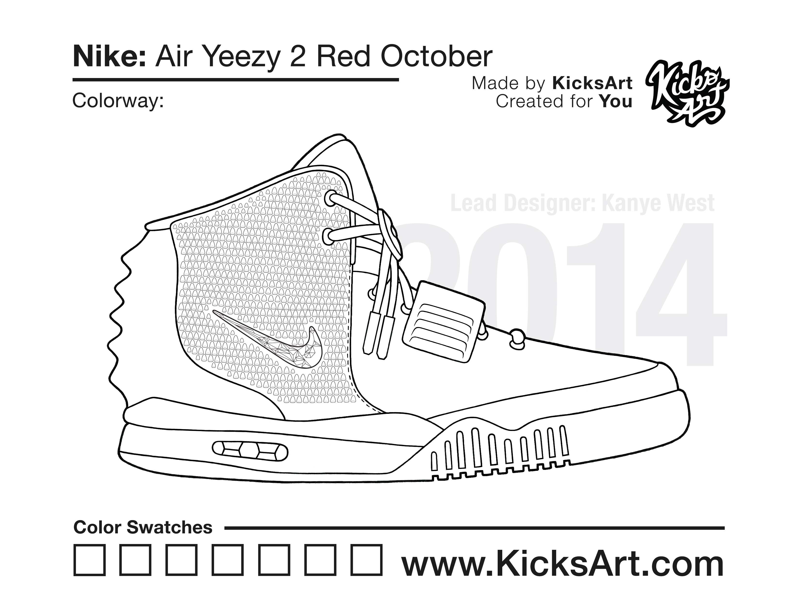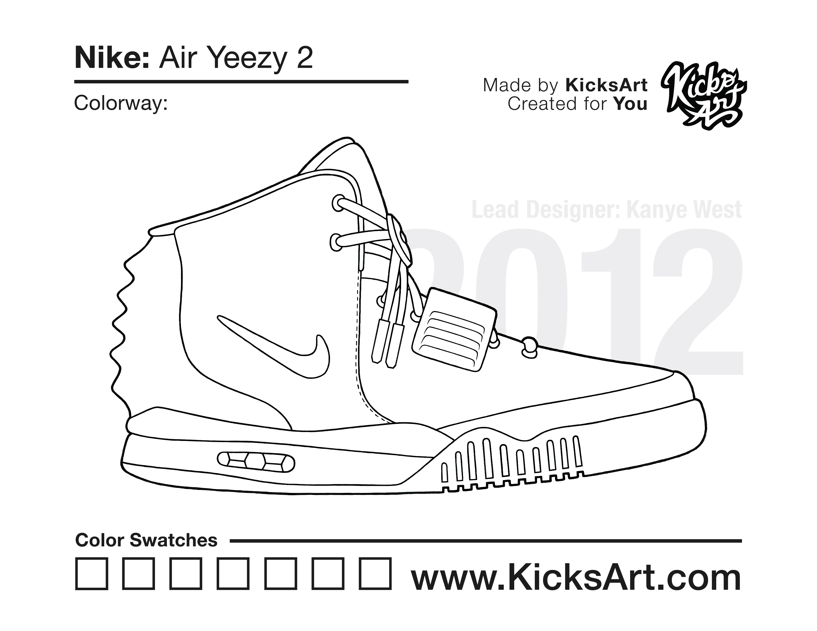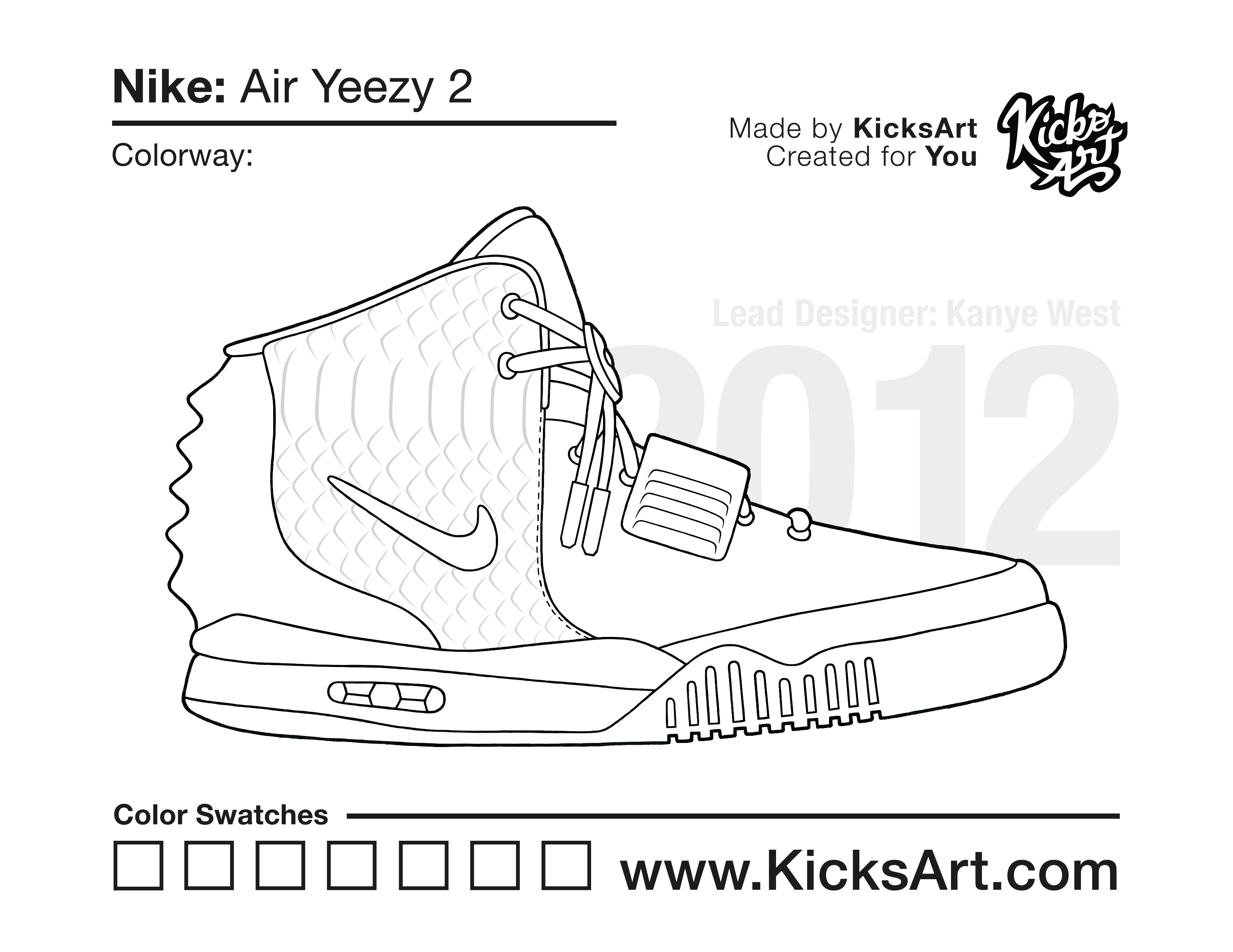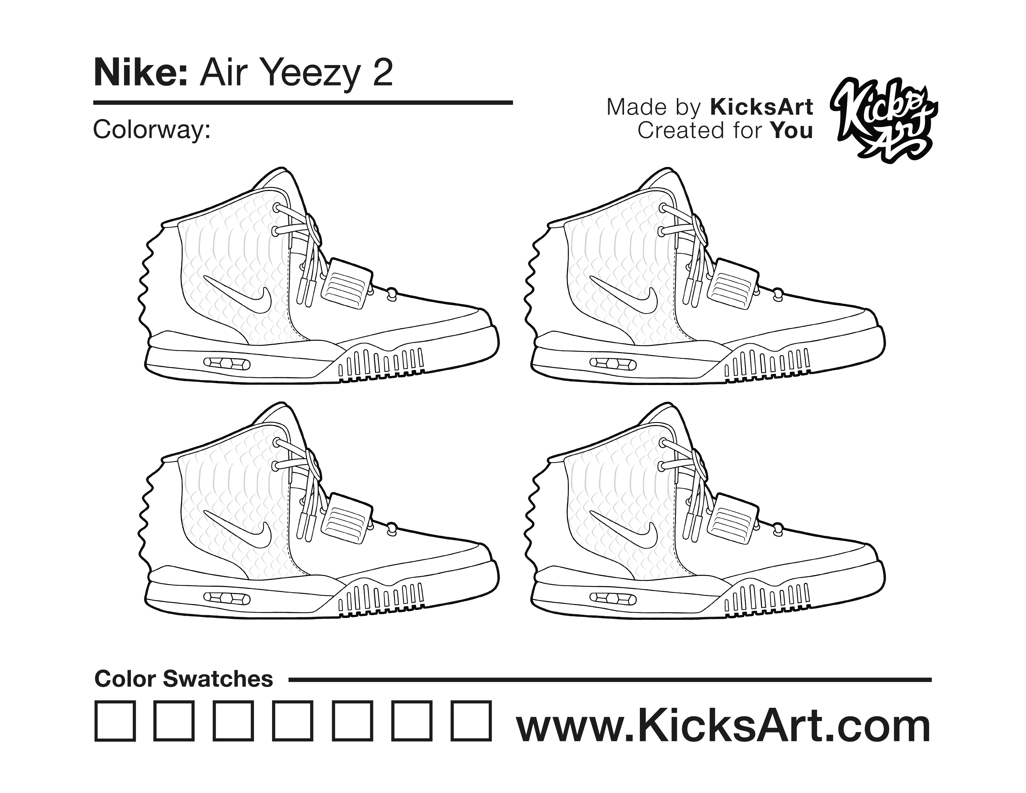 Nike Air Yeezy 2 Sneaker Coloring Pages March 13, 2019 kicksart05 For any sneaker coloring page, click on the button above the image to start the instant download! FREE Download: Nike Air Yeezy 2 Art materials can be expensive!Try out colorways on these smaller templates so your supplies can last longer! Nike Air Yeezy 2 (4UP) Nike Air Yeezy 2 (Drawing Guide) Drawing Guide (Page 2) Additional Variants Nike Air Yeezy 2 (Plain Upper) Nike Air Yeezy 2 Red October