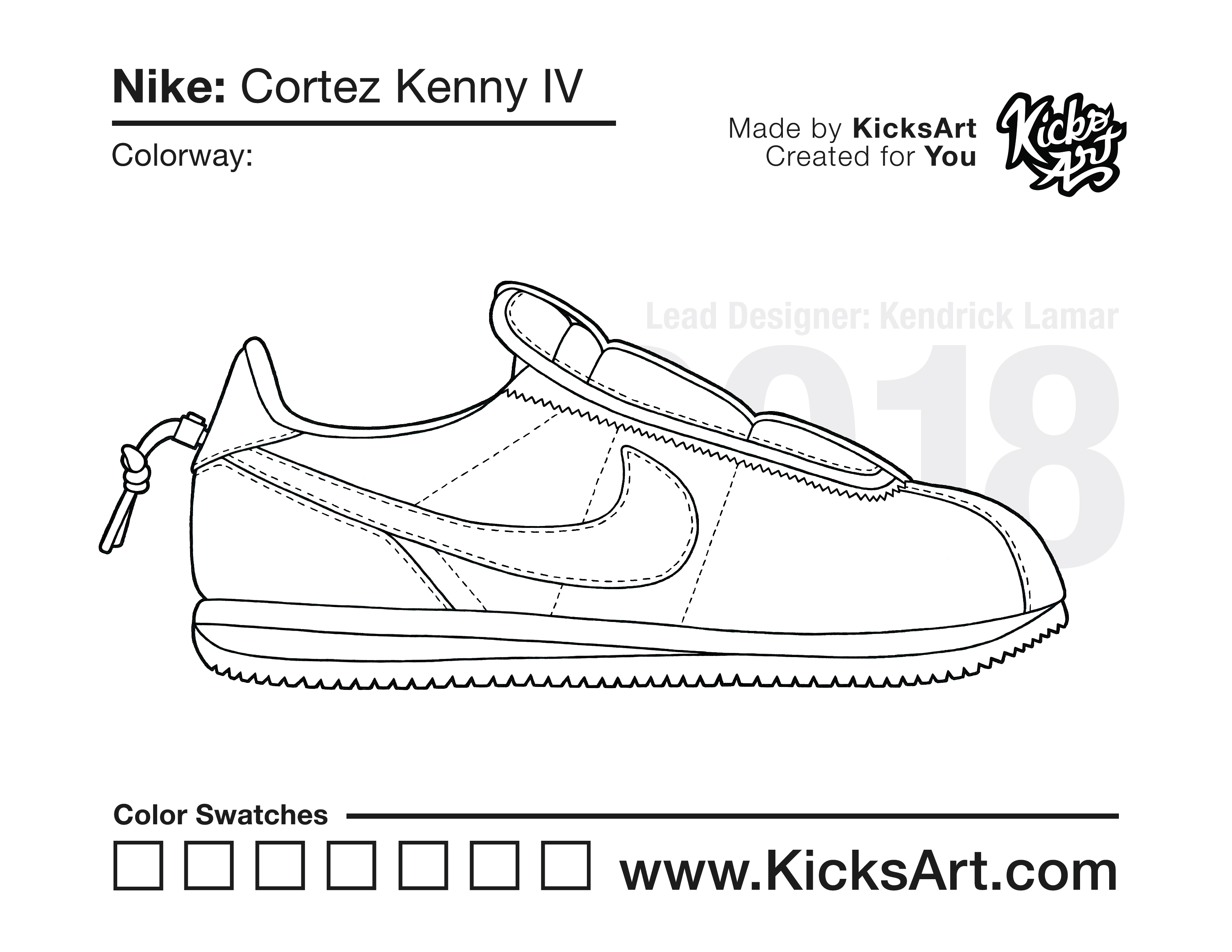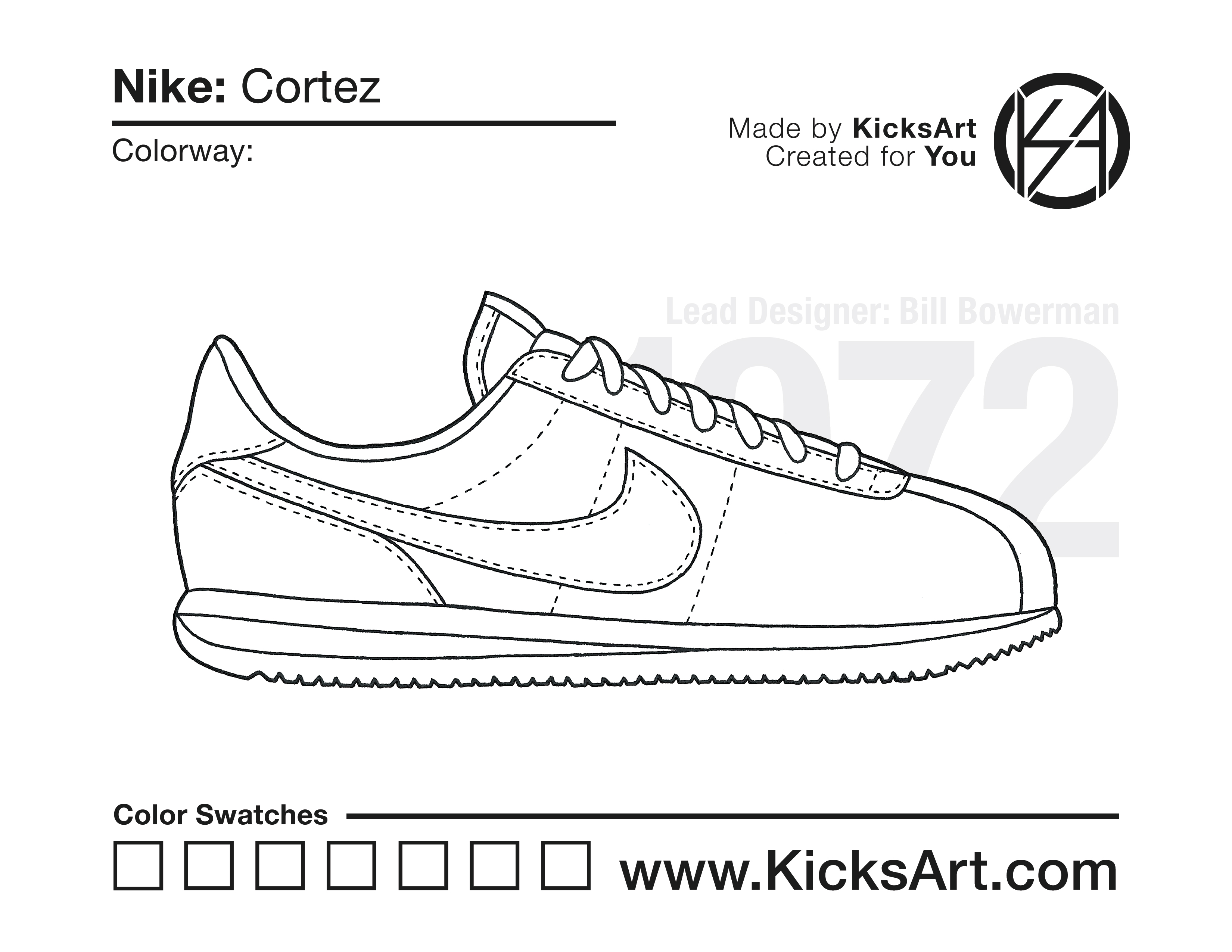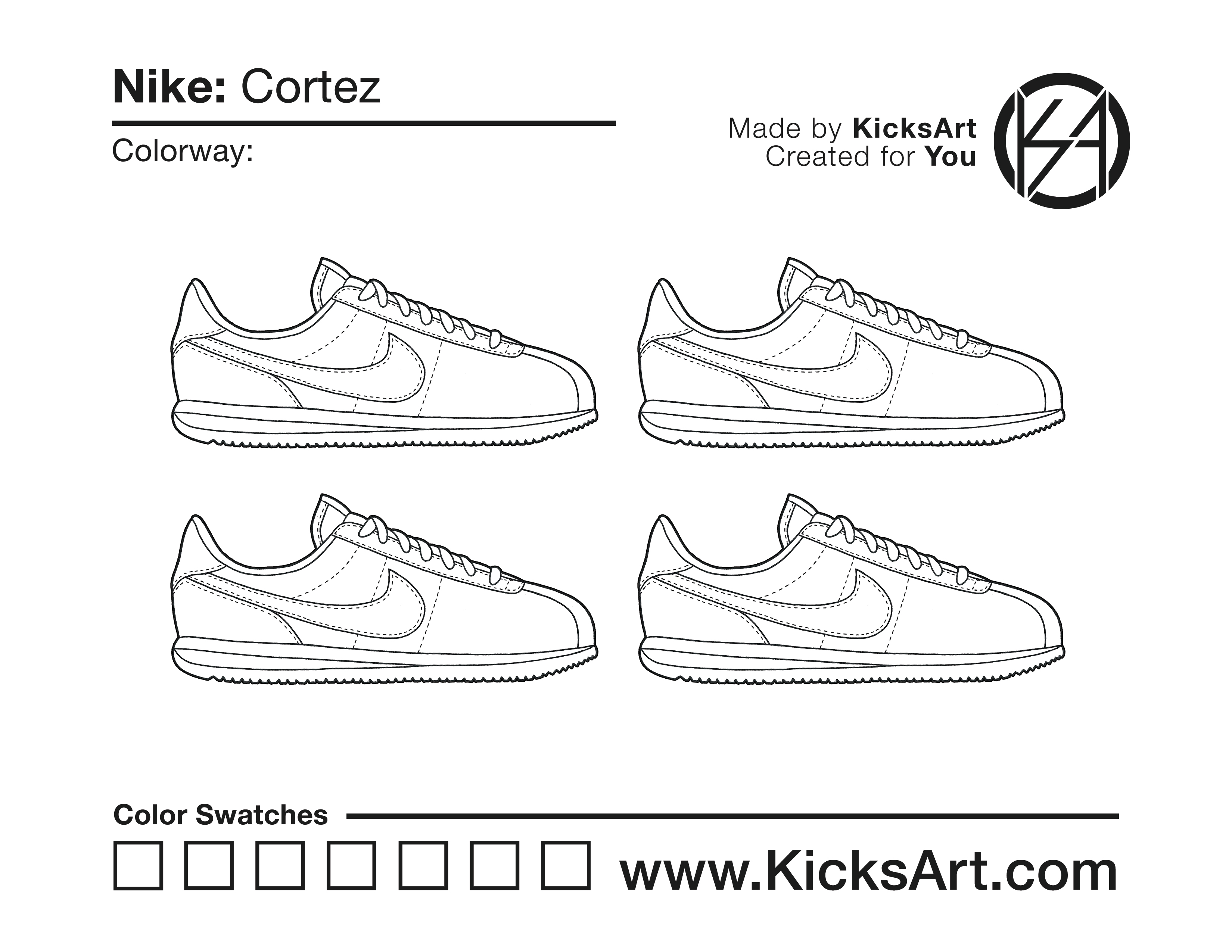 Nike Cortez Sneaker Coloring Pages March 13, 2019 kicksart05 For any sneaker coloring page, click on the button above the image to start the instant download! FREE Download: Nike Cortez Art materials can be expensive!Try out colorways on these smaller templates so your supplies can last longer! Nike Cortez (4UP) Nike Cortez (Drawing Guide) Drawing Guide (Page 2) Additional Variants Nike Cortez Kenny IV