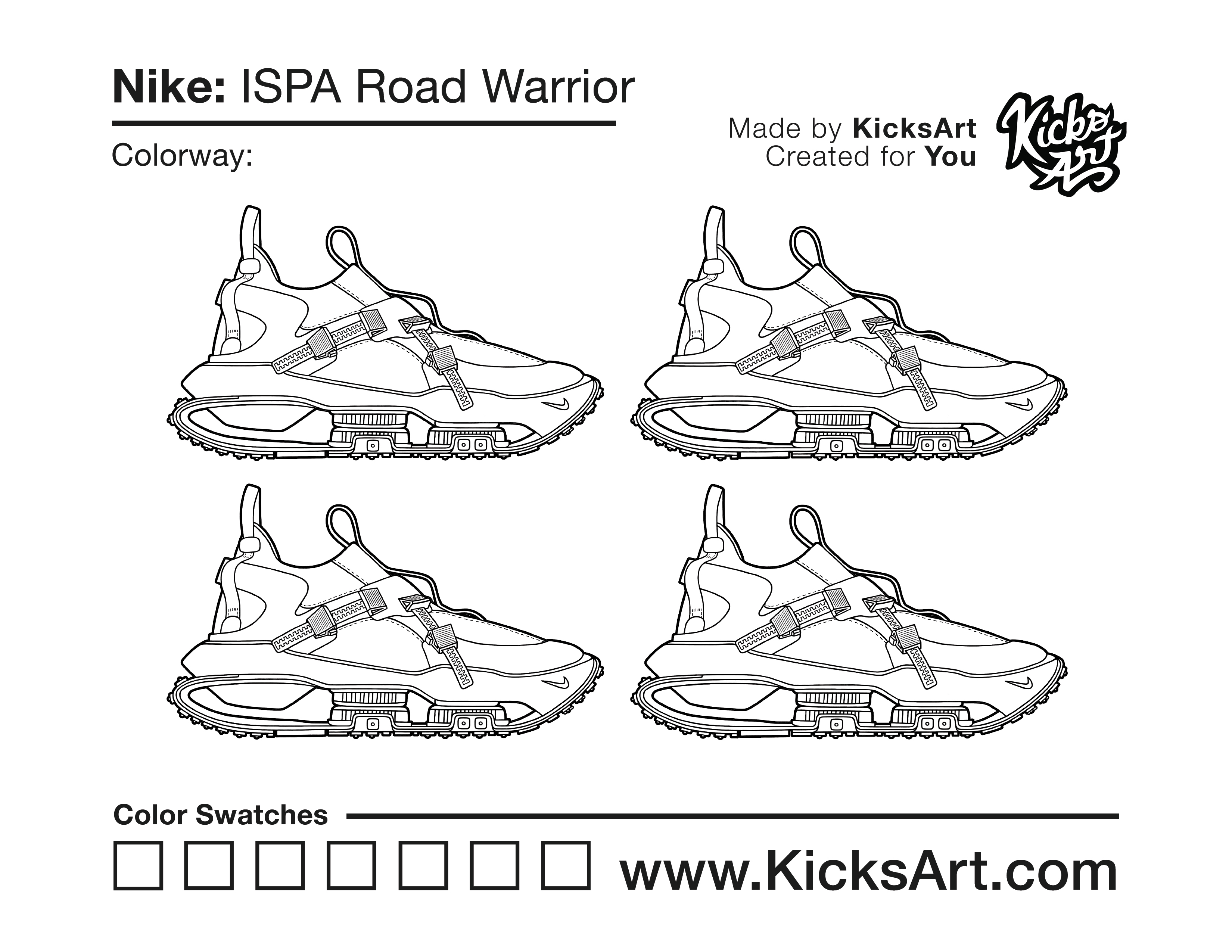 Nike ISPA Road Warrior Sneaker Coloring Pages December 28, 2020 kicksart05 For any sneaker coloring page, click on the button above the image to start the instant download! FREE Download: Nike ISPA Road Warrior Art materials can be expensive!Try out colorways on these smaller templates so your supplies can last longer! Nike ISPA Road Warrior (4UP) Nike ISPA Road Warrior (Drawing Guide) Drawing Guide (Page 2)