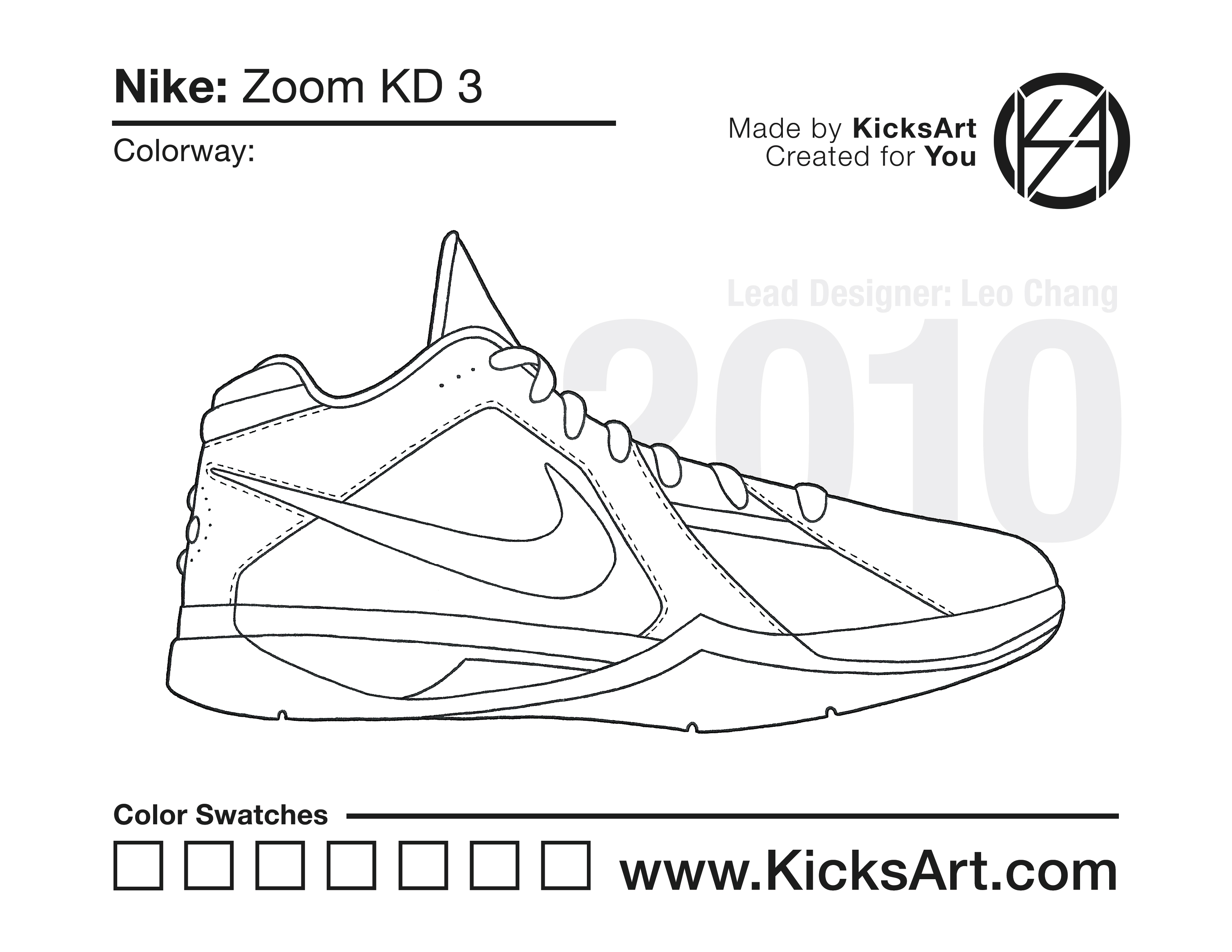 Nike KD 3 Sneaker Coloring Pages March 8, 2019 kicksart05 For any sneaker coloring page, click on the button above the image to start the instant download! FREE Download: Nike KD 3 Art materials can be expensive!Try out colorways on these smaller templates so your supplies can last longer! Nike KD 3 (4UP)