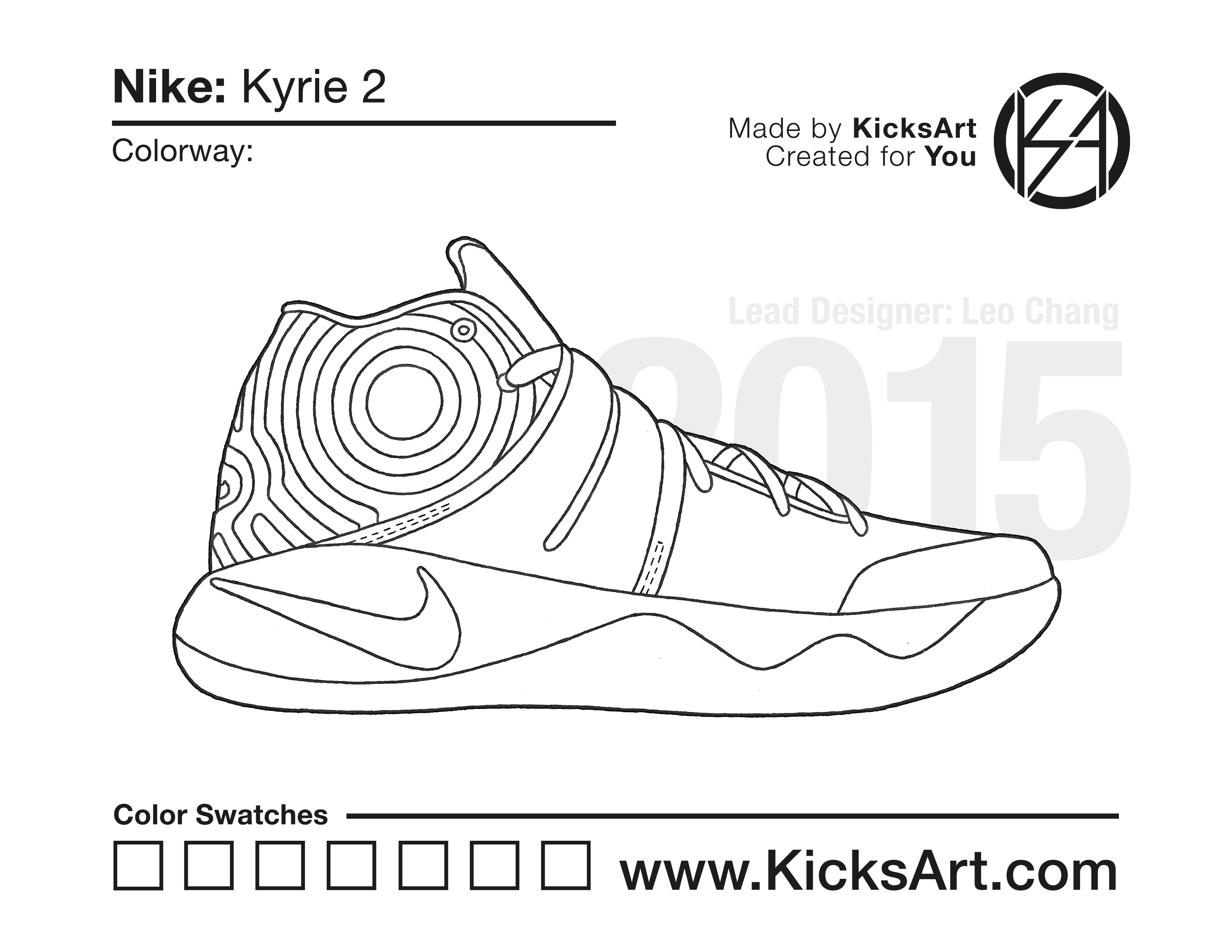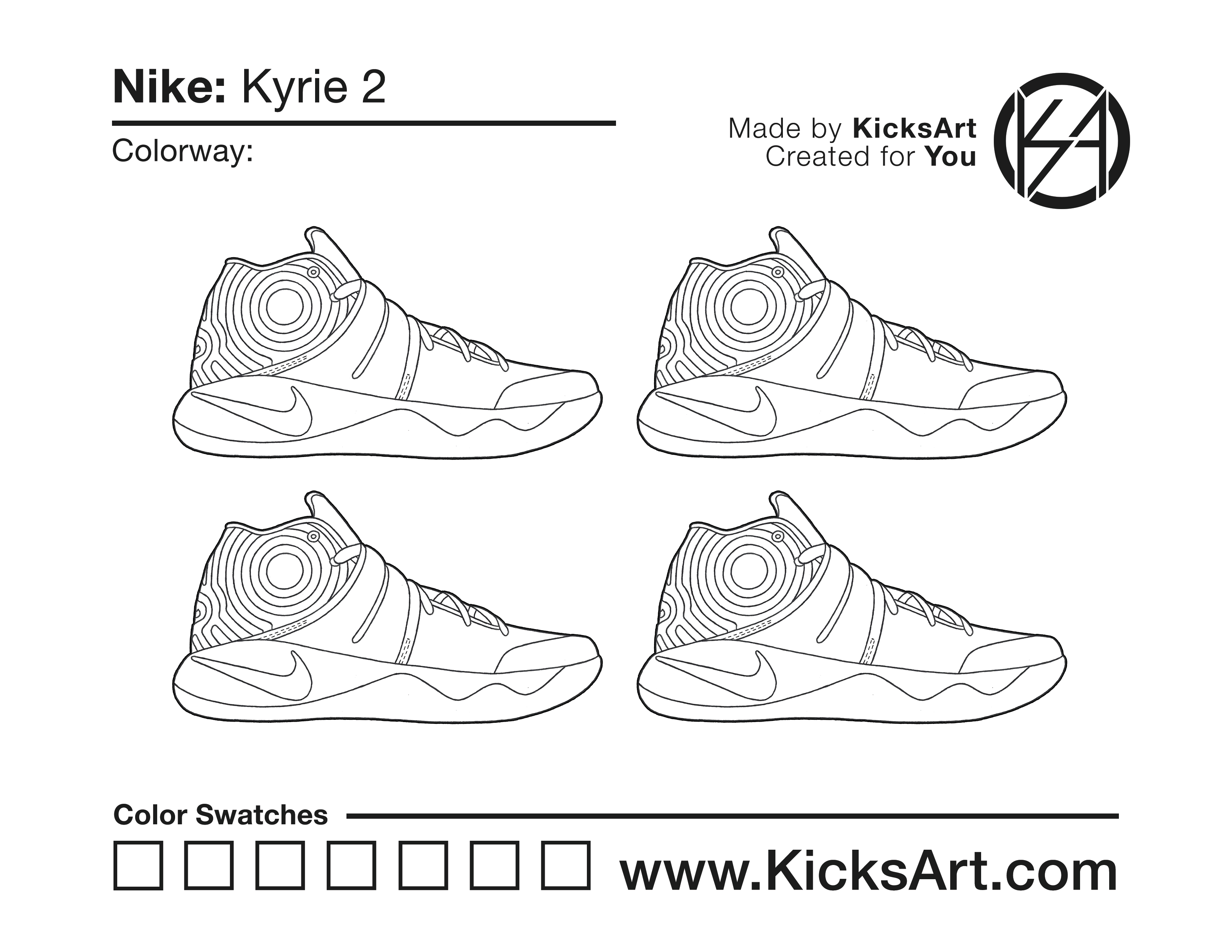 Nike Kyrie 2 Sneaker Coloring Pages March 14, 2019 kicksart05 For any sneaker coloring page, click on the button above the image to start the instant download! FREE Download: Nike Kyrie 2 Art materials can be expensive!Try out colorways on these smaller templates so your supplies can last longer! Nike Kyrie 2 (4UP)