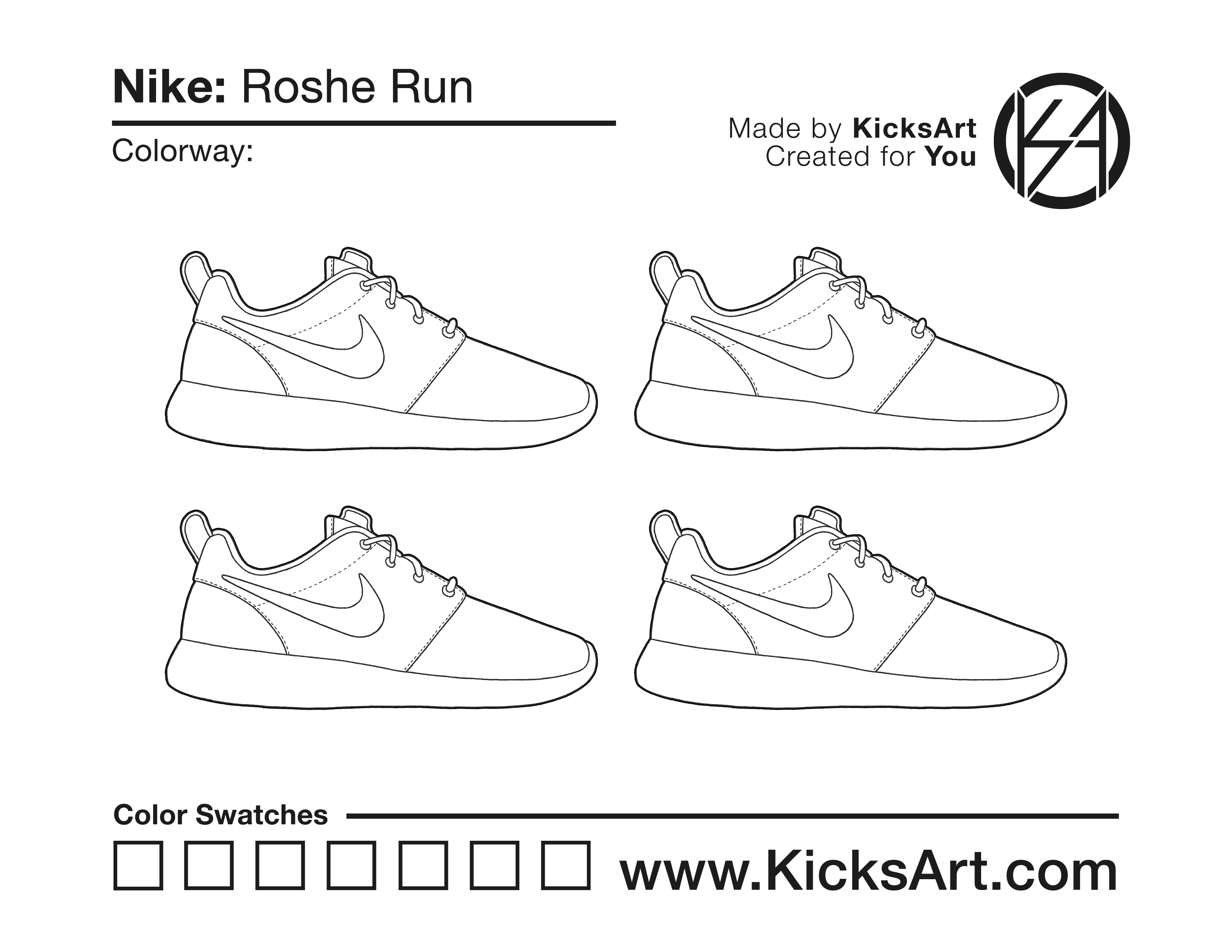 Nike Roshe Run Sneaker Coloring Pages March 14, 2019 kicksart05 For any sneaker coloring page, click on the button above the image to start the instant download! FREE Download: Nike Roshe Run Art materials can be expensive!Try out colorways on these smaller templates so your supplies can last longer! Nike Roshe Run (4UP) Nike Roshe Run (Drawing Guide) Drawing Guide (Page 2) Additional Variants Nike Roshe Run NM SP