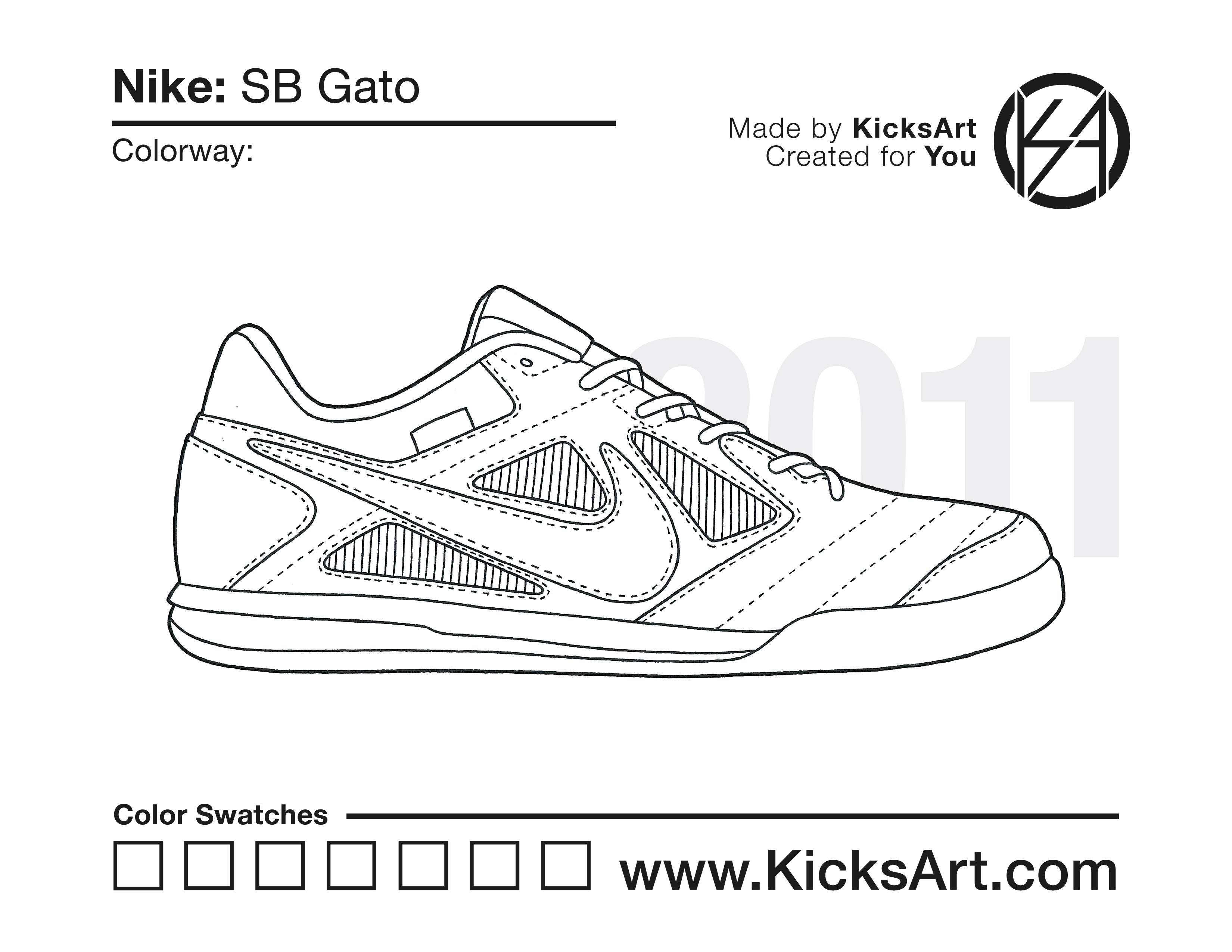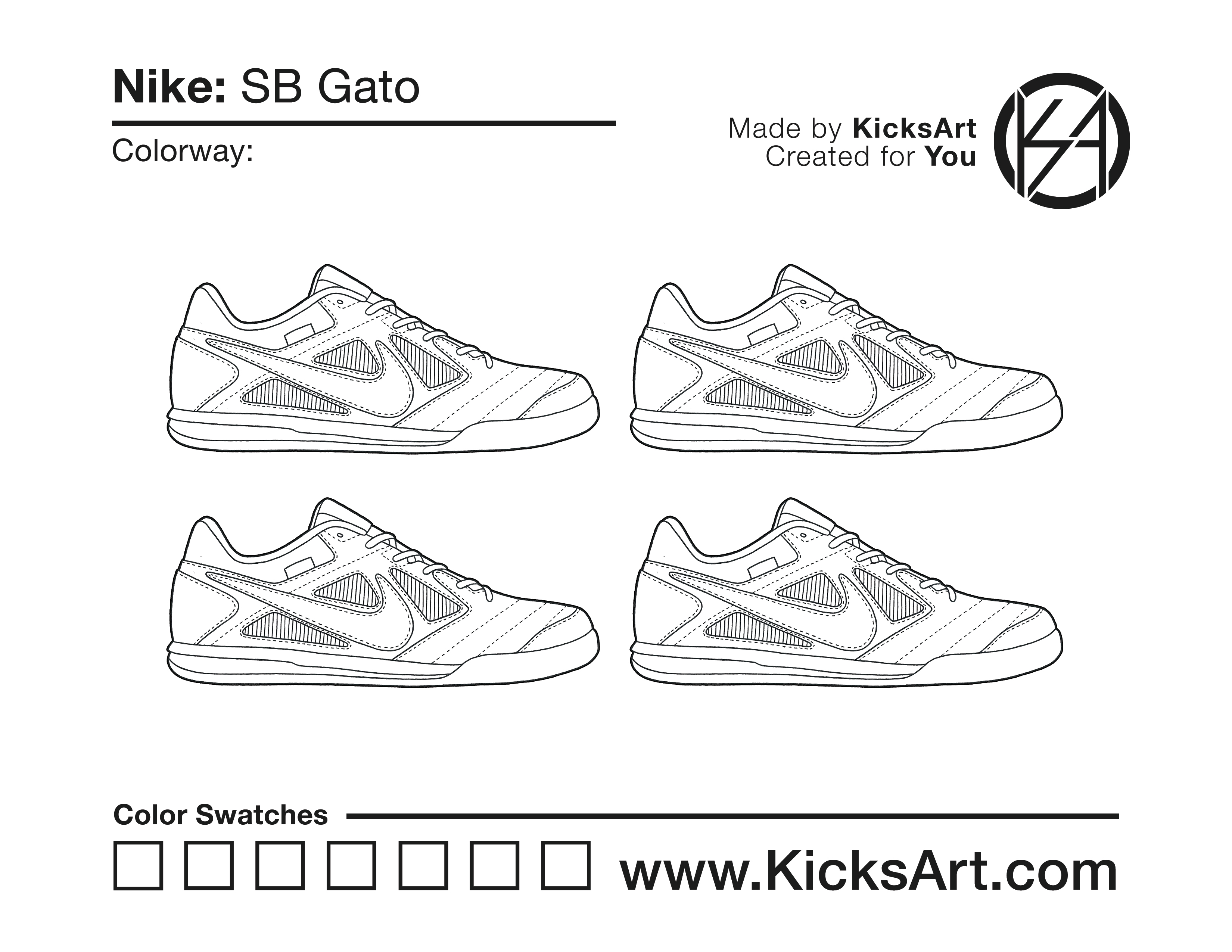 Nike SB Gato Sneaker Coloring Pages March 14, 2019 kicksart05 For any sneaker coloring page, click on the button above the image to start the instant download! FREE Download: Nike SB Gato Art materials can be expensive!Try out colorways on these smaller templates so your supplies can last longer! Nike SB Gato (4UP)