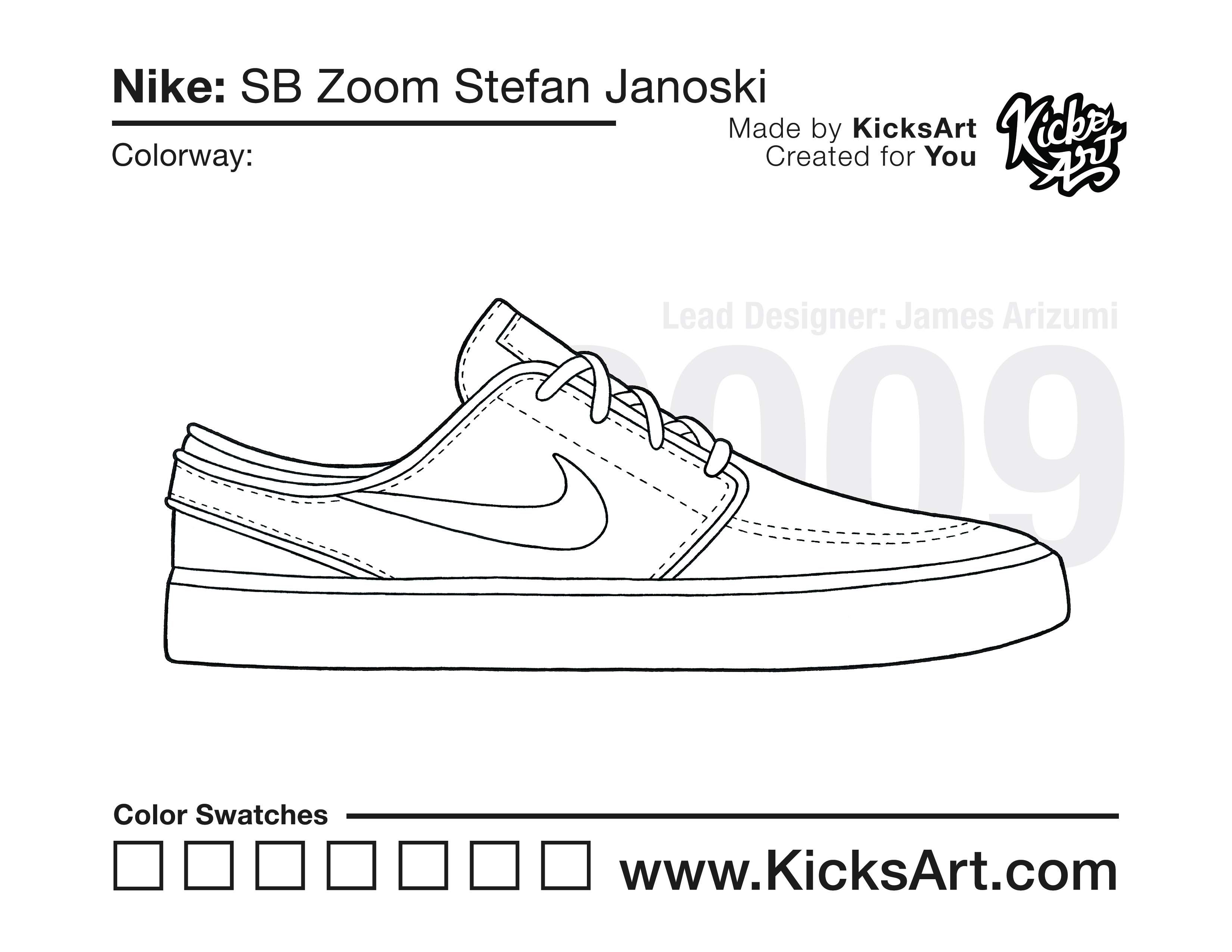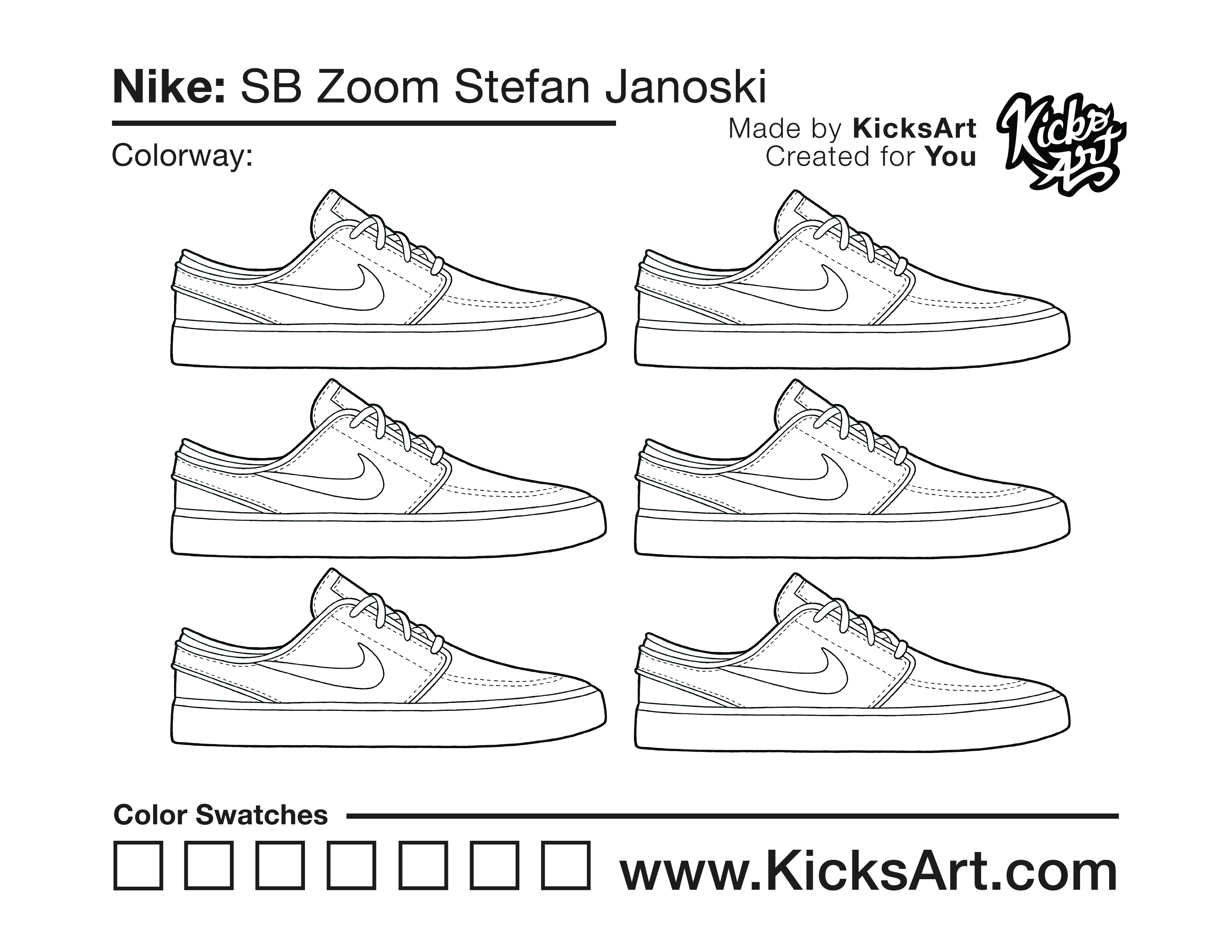 Nike SB Zoom Stefan Janoski Sneaker Coloring Pages August 28, 2020 kicksart05 For any sneaker coloring page, click on the button above the image to start the instant download! FREE Download: Nike SB Zoom Janoski Art materials can be expensive!Try out colorways on these smaller templates so your supplies can last longer! Nike SB Zoom Janoski (6UP) Nike SB Zoom Janoski (Drawing Guide) Drawing Guide (Page 2)