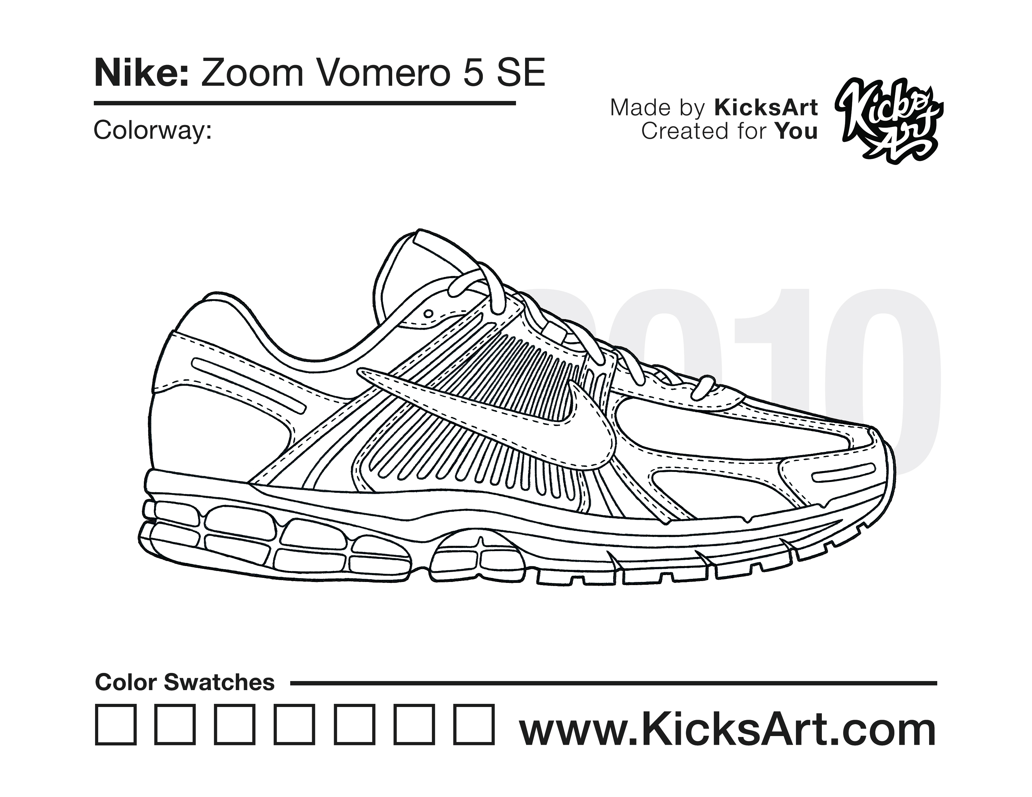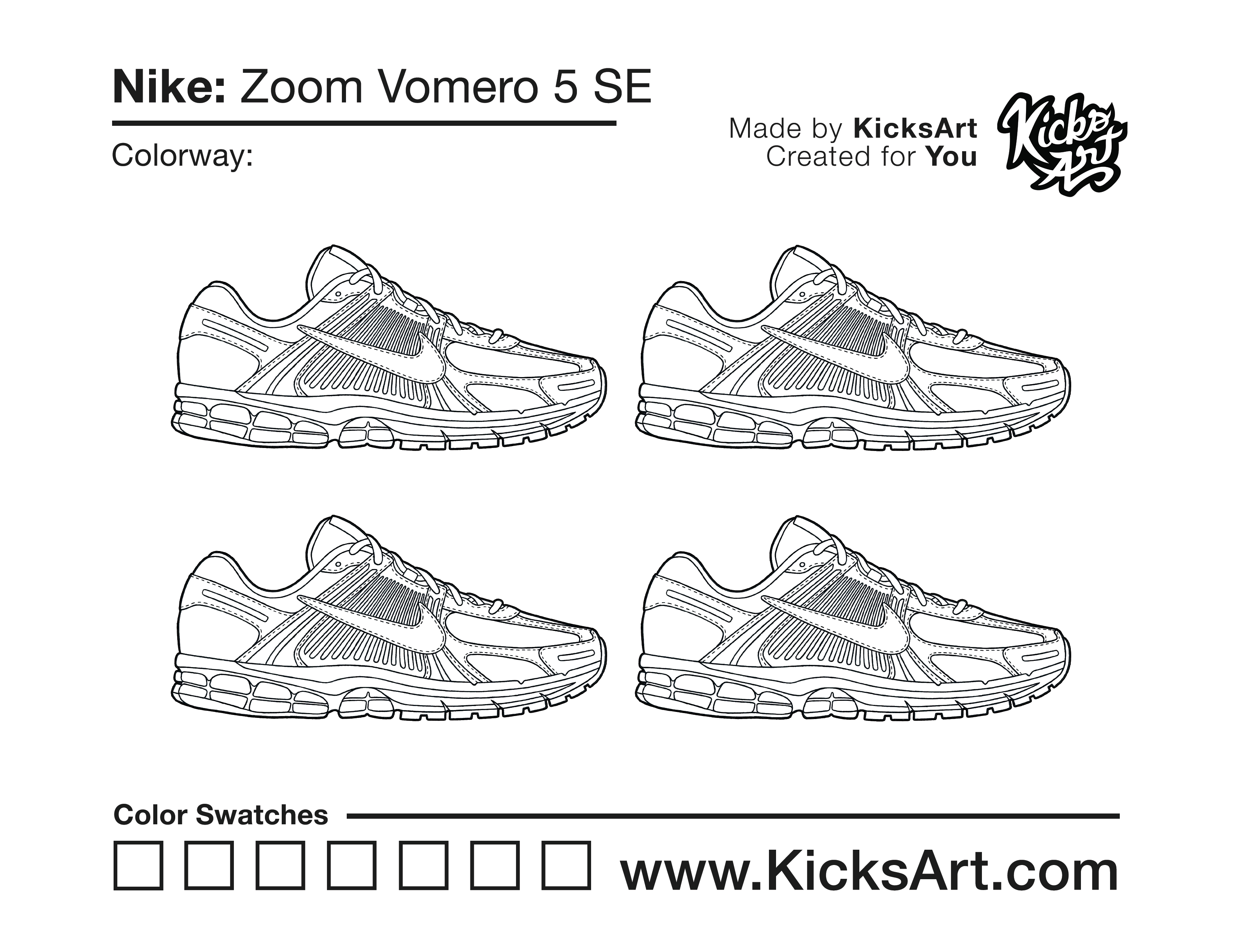Nike Zoom Vomero 5 SE Sneaker Coloring Pages August 4, 2020 kicksart05 For any sneaker coloring page, click on the button above the image to start the instant download! FREE Download: Nike Zoom Vomero 5 SE Art materials can be expensive!Try out colorways on these smaller templates so your supplies can last longer! Nike Zoom Vomero 5 SE (4UP)