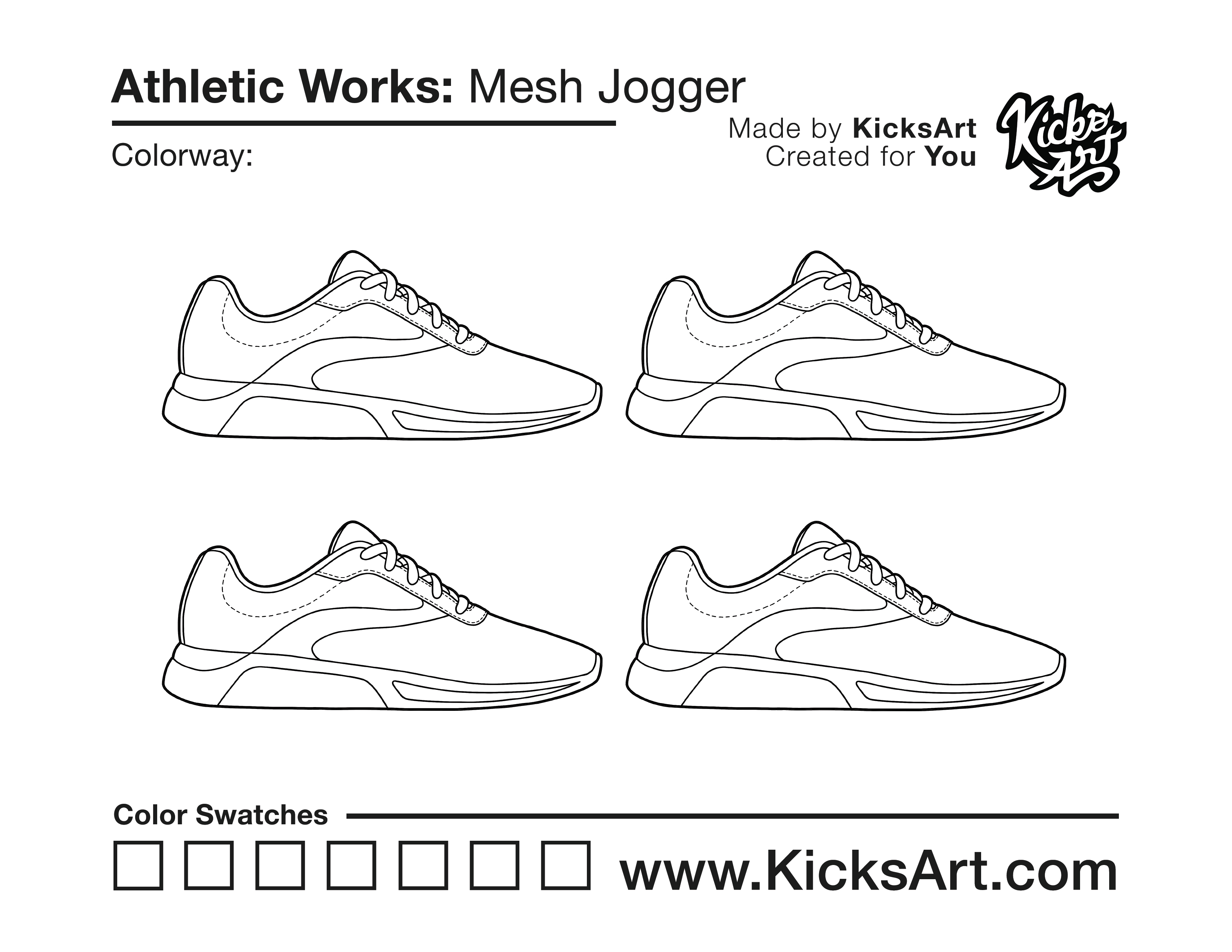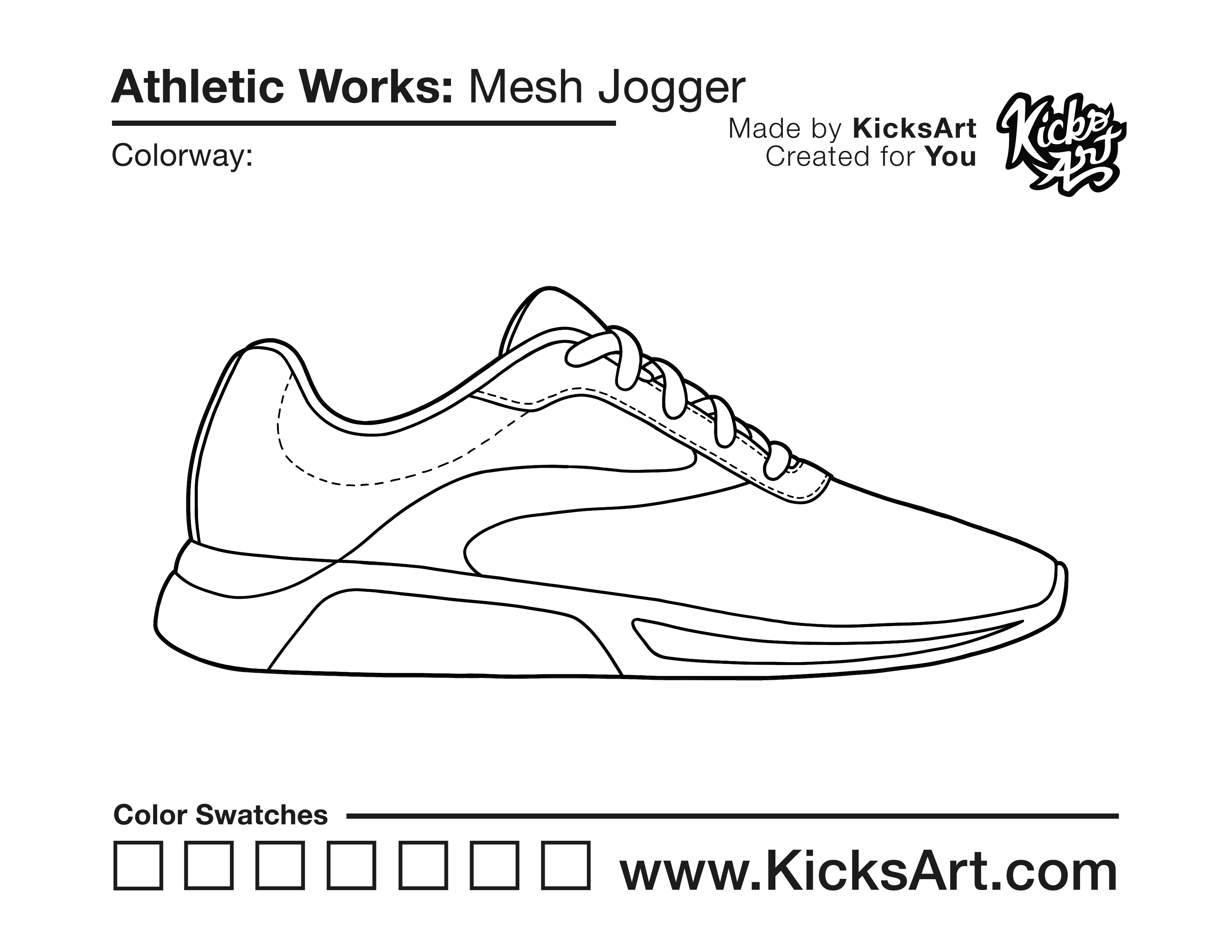 Athletic Works Mesh Jogger Sneaker Coloring Pages June 1, 2021 kicksart05 For any sneaker coloring page, click on the button above the image to start the instant download! FREE Download: Athletic Works Mesh Jogger Art materials can be expensive!Try out colorways on these smaller templates so your supplies can last longer! Athletic Works Mesh Jogger (4UP)