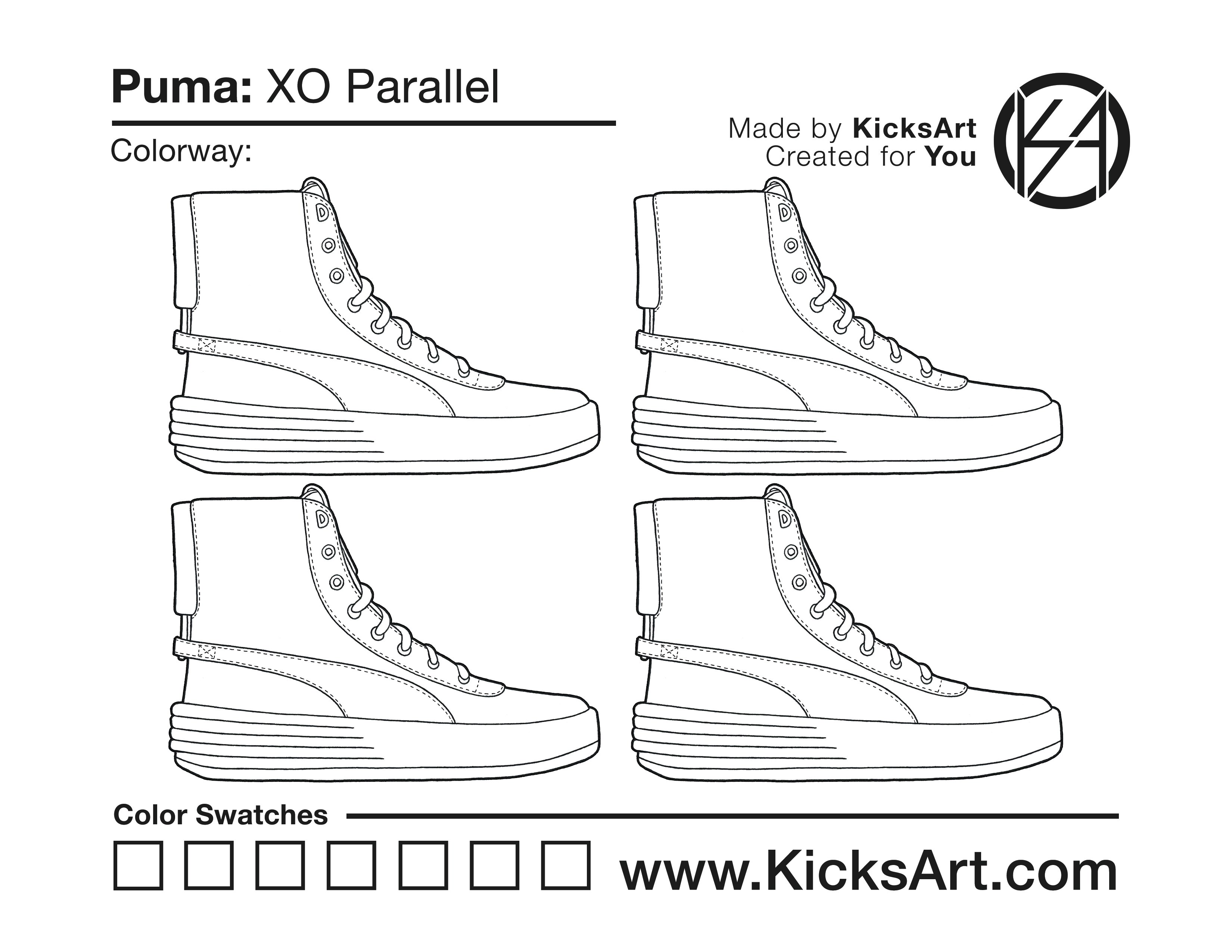 Puma XO Parallel Sneaker Coloring Pages March 18, 2019 kicksart05 For any sneaker coloring page, click on the button above the image to start the instant download! FREE Download: Puma XO Parallel Art materials can be expensive!Try out colorways on these smaller templates so your supplies can last longer! Puma XO Parallel (4UP)