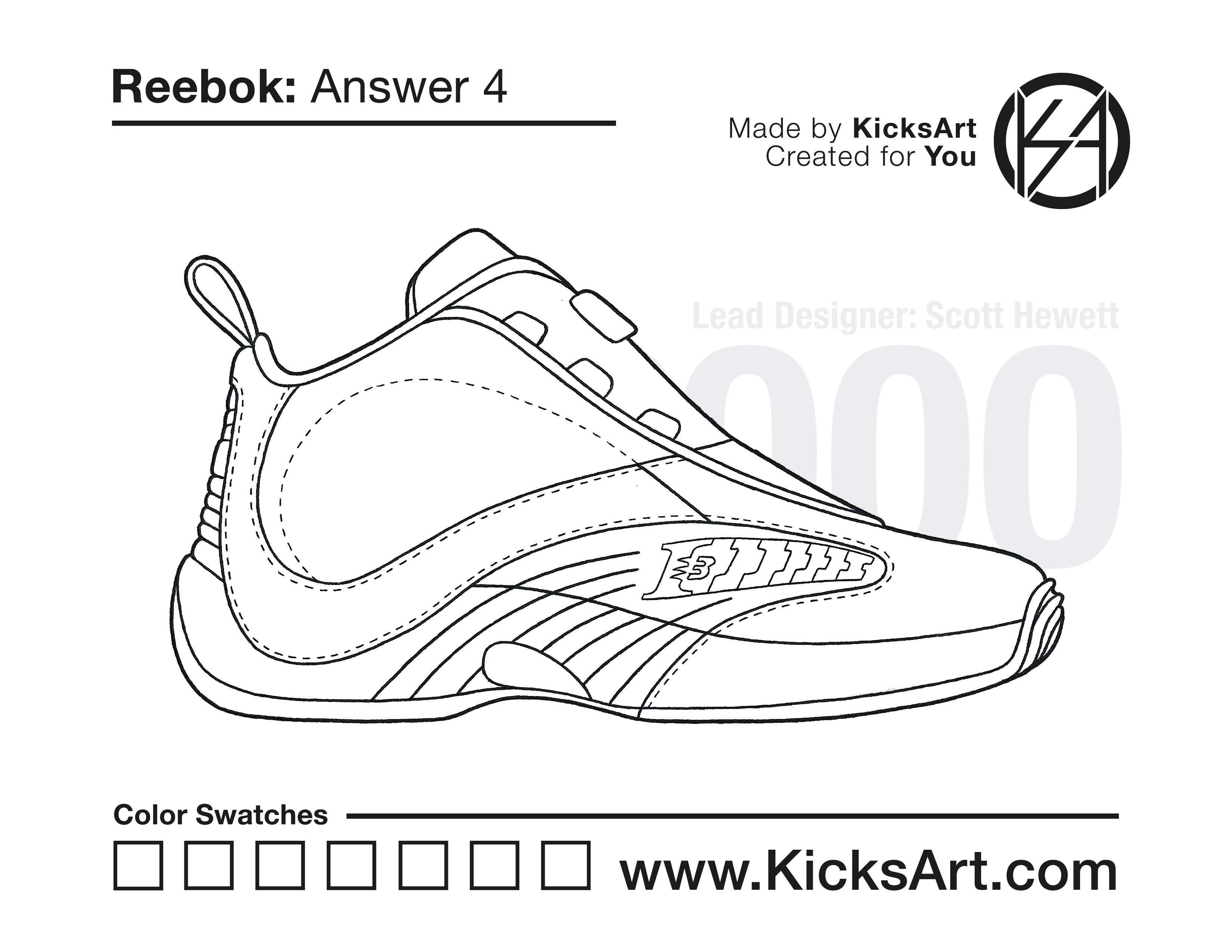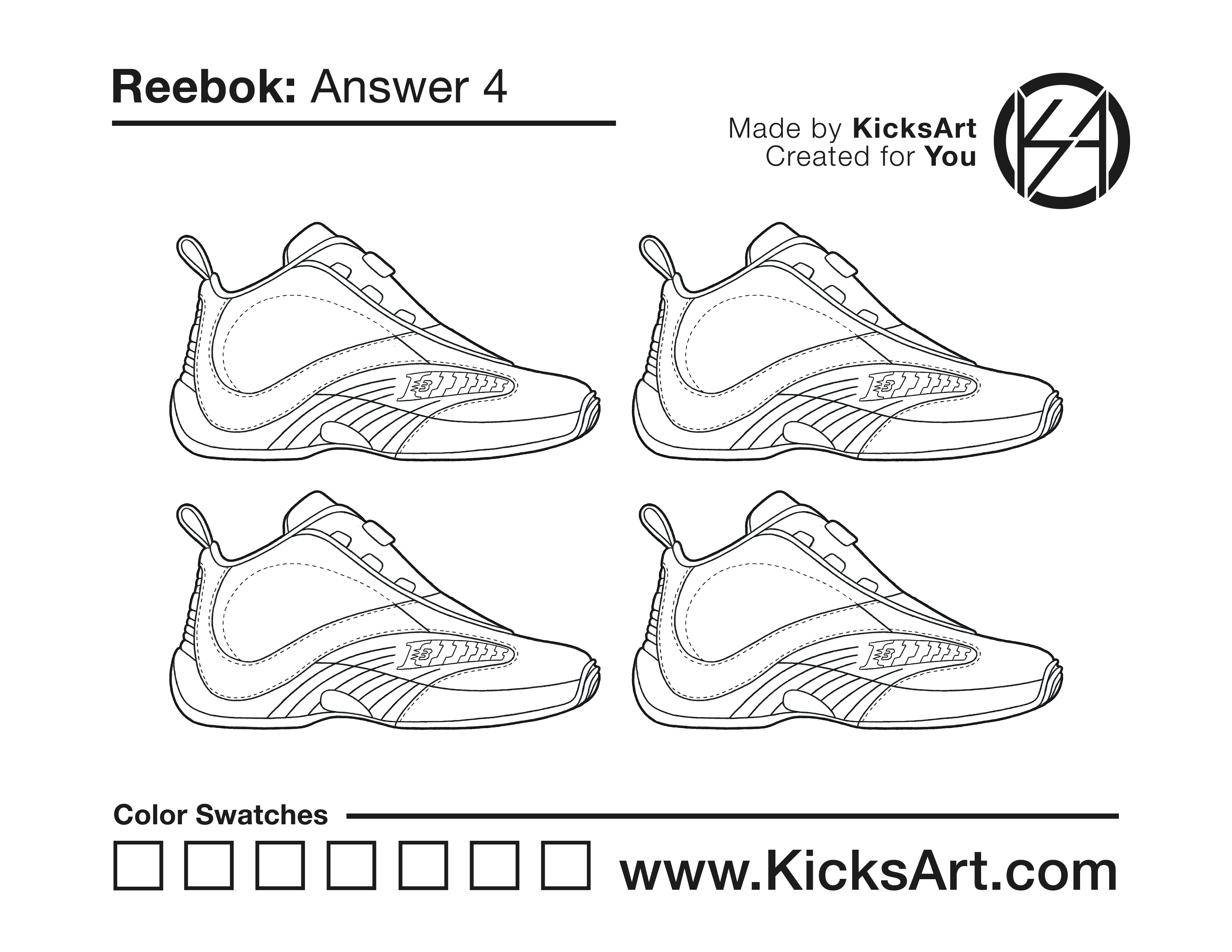 Reebok Answer 4 Sneaker Coloring Pages March 18, 2019 kicksart05 For any sneaker coloring page, click on the button above the image to start the instant download! FREE Download: Reebok Answer 4 Art materials can be expensive!Try out colorways on these smaller templates so your supplies can last longer! Reebok Answer 4 (4UP)