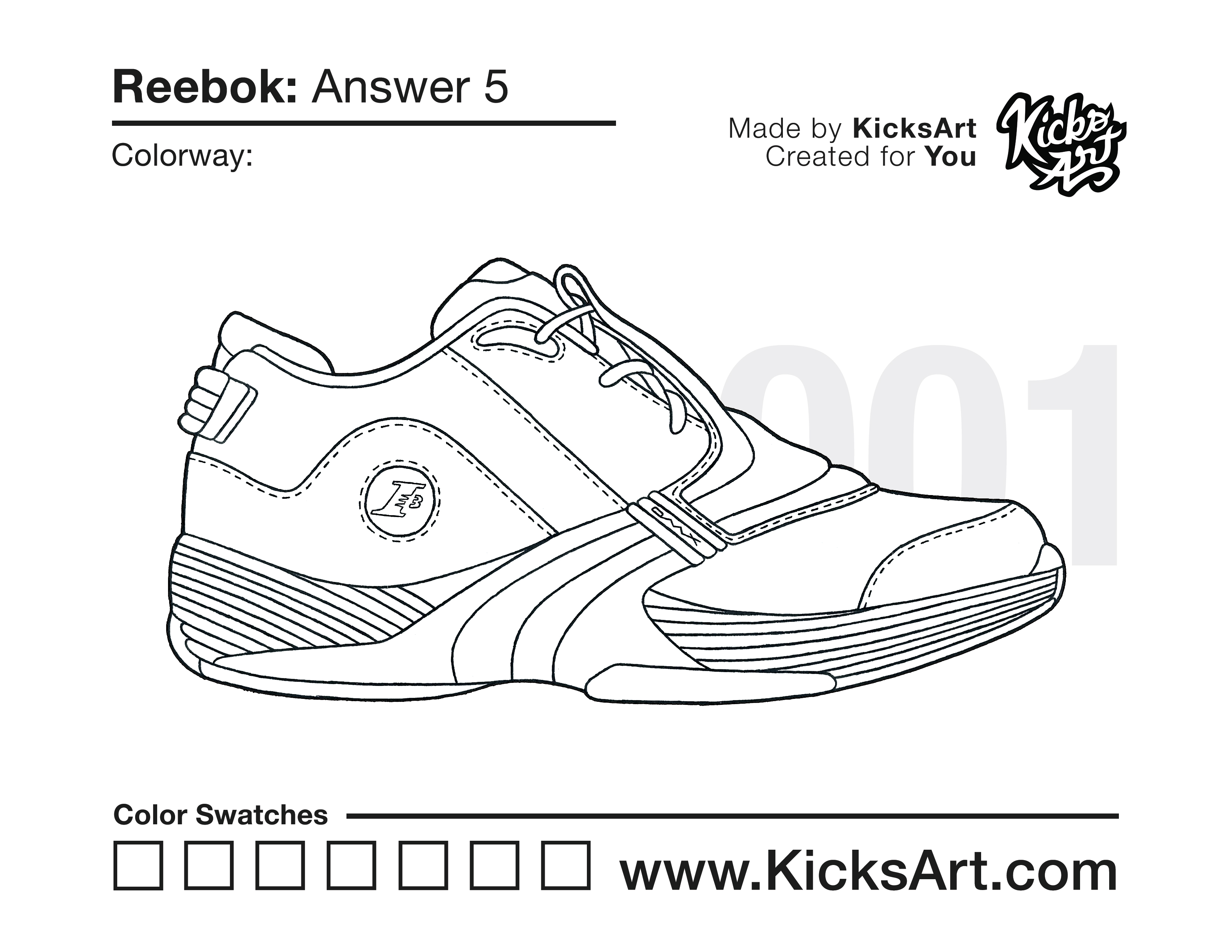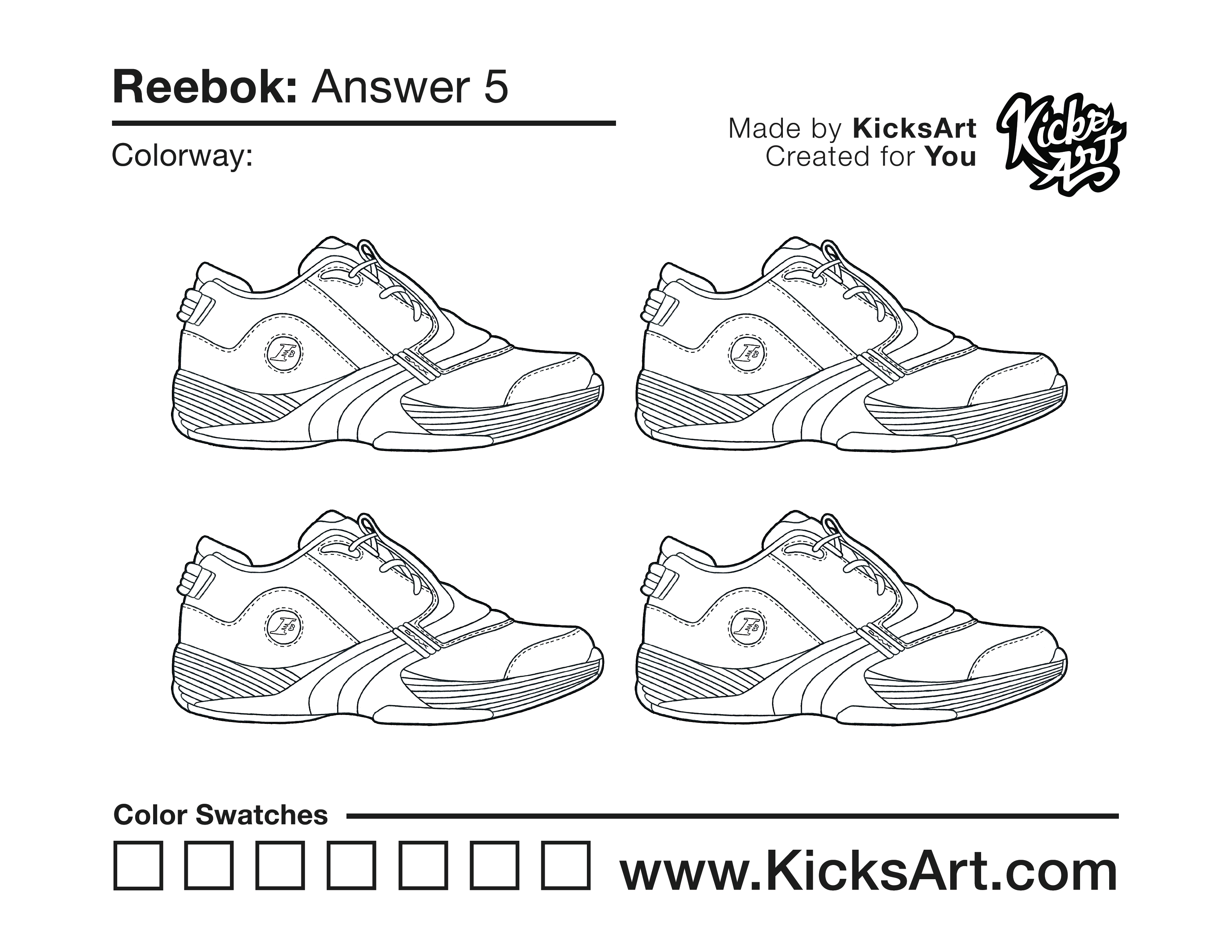 Reebok Answer 5 Sneaker Coloring Page April 10, 2020 kicksart05 For any sneaker coloring page, click on the button above the image to start the instant download! FREE Download: Reebok Answer 5 Art materials can be expensive!Try out colorways on these smaller templates so your supplies can last longer! Reebok Answer 5 (4UP)