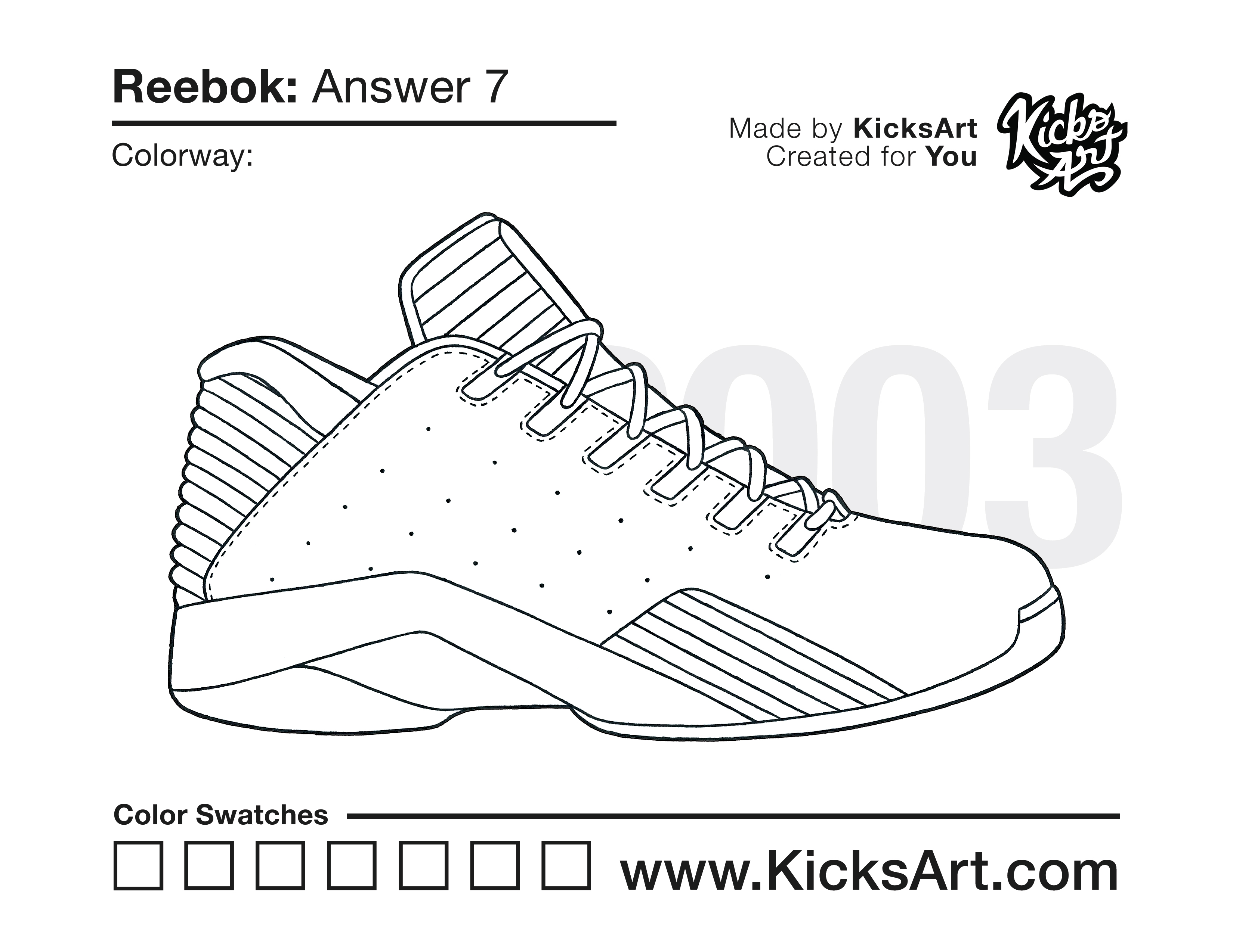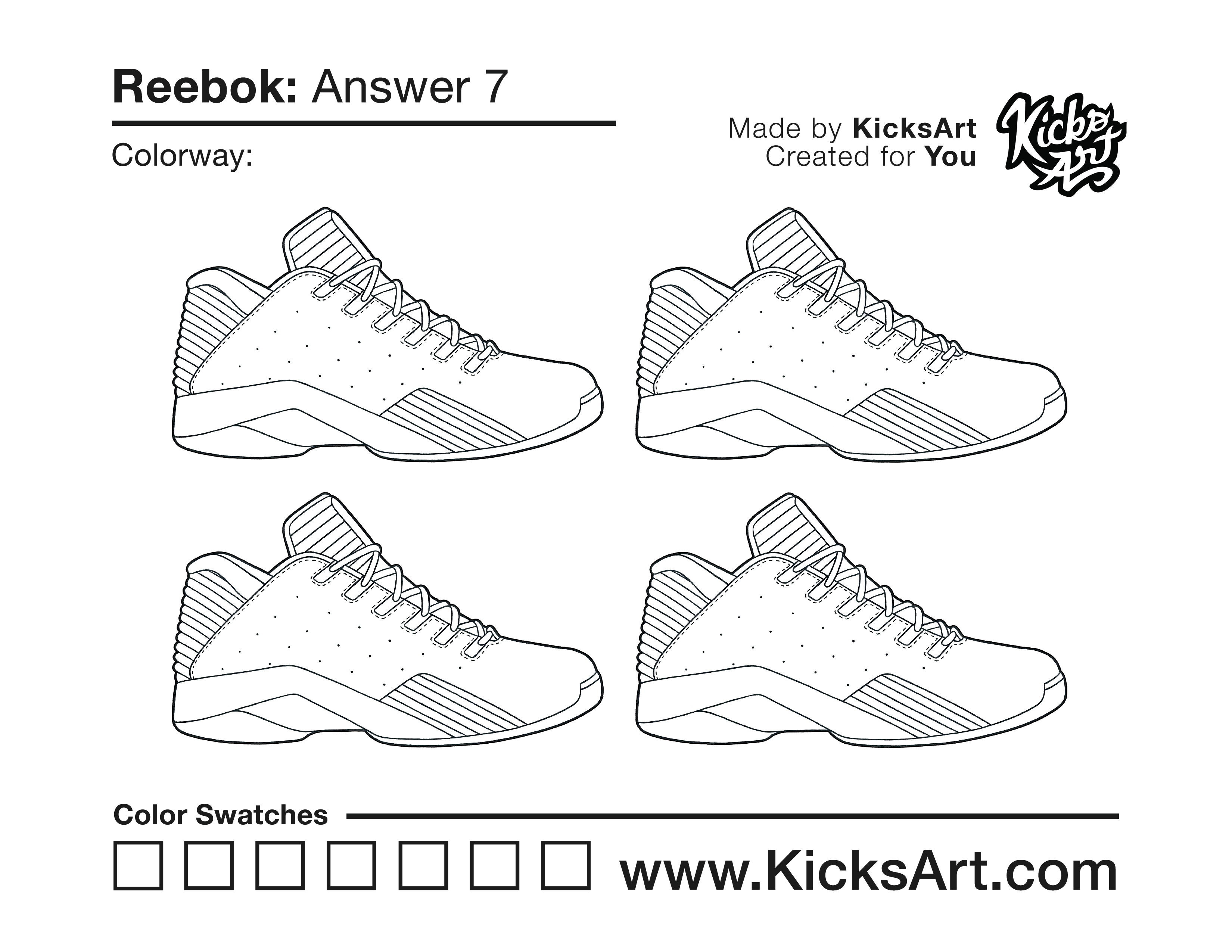 Reebok Answer 7 Sneaker Coloring Pages April 13, 2020 kicksart05 For any sneaker coloring page, click on the button above the image to start the instant download! FREE Download: Reebok Answer 7 Art materials can be expensive!Try out colorways on these smaller templates so your supplies can last longer! Reebok Answer 7 (4UP)