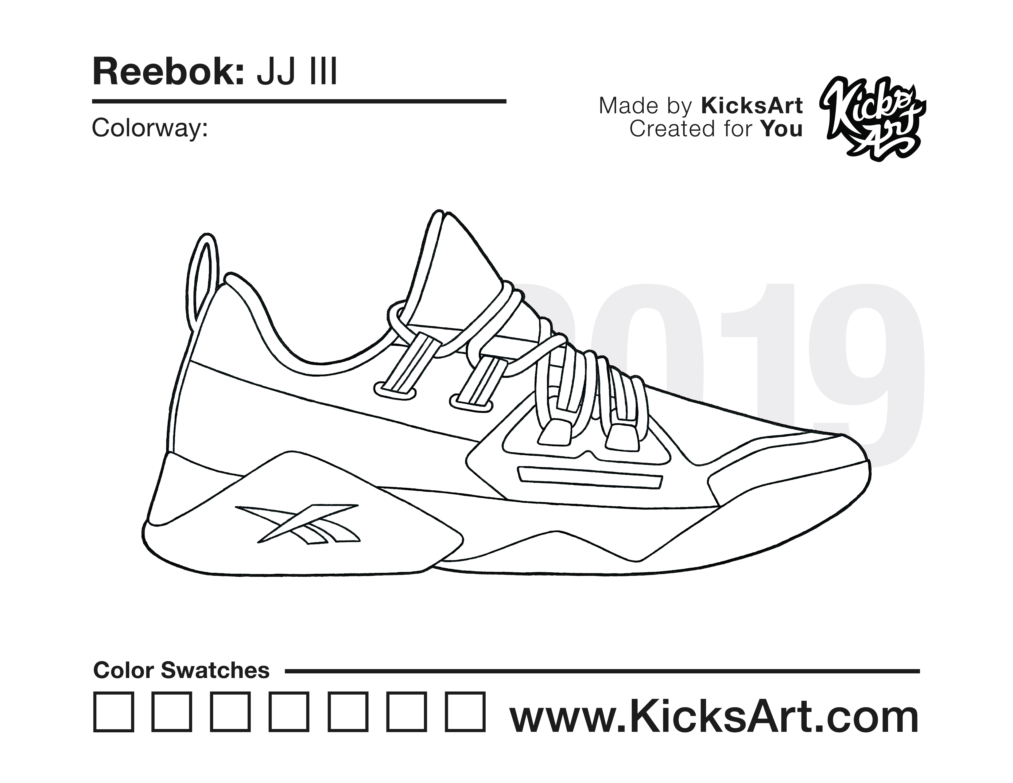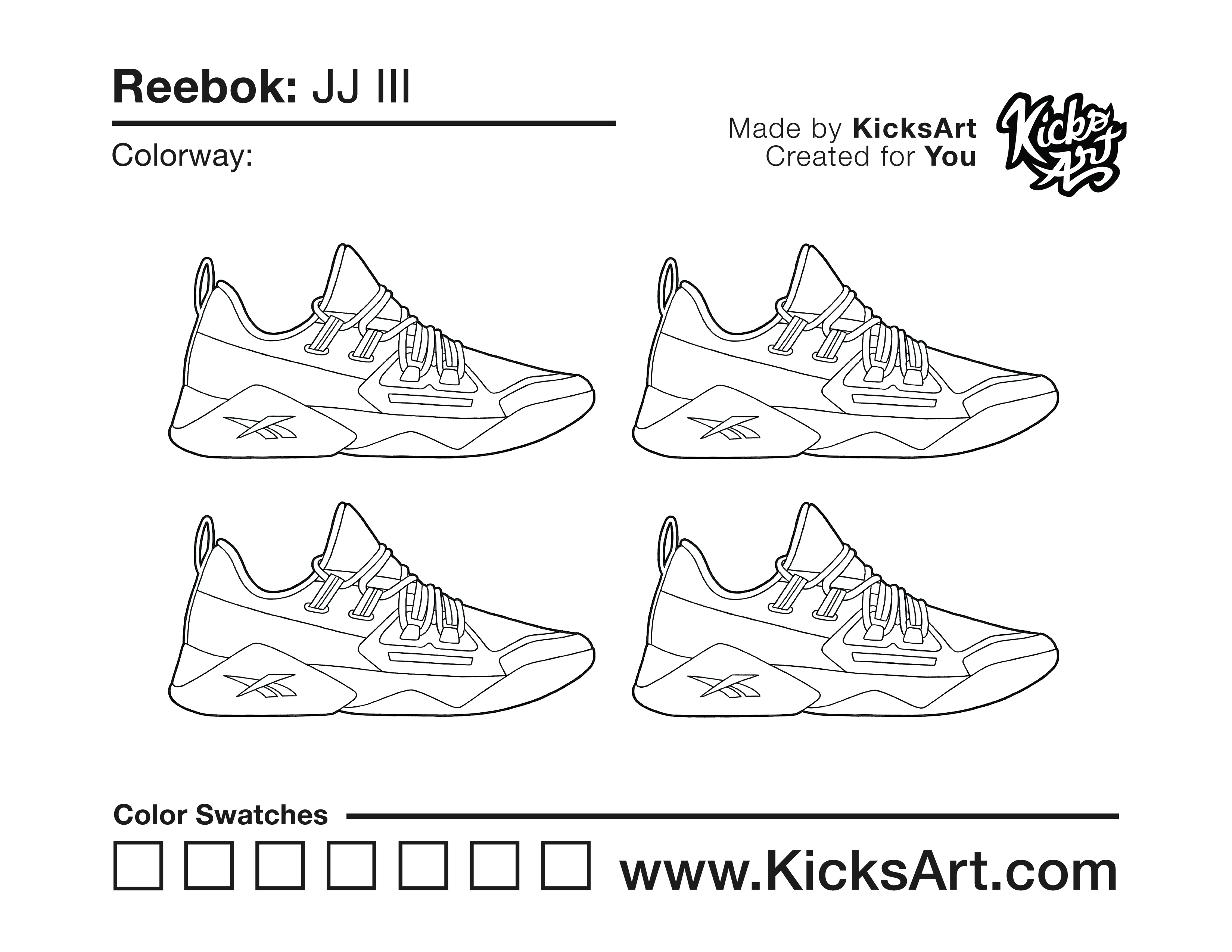 Reebok JJ III Sneaker Coloring Pages September 30, 2020 kicksart05 For any sneaker coloring page, click on the button above the image to start the instant download! FREE Download: Reebok JJ III Art materials can be expensive!Try out colorways on these smaller templates so your supplies can last longer! Reebok JJ III (4UP)
