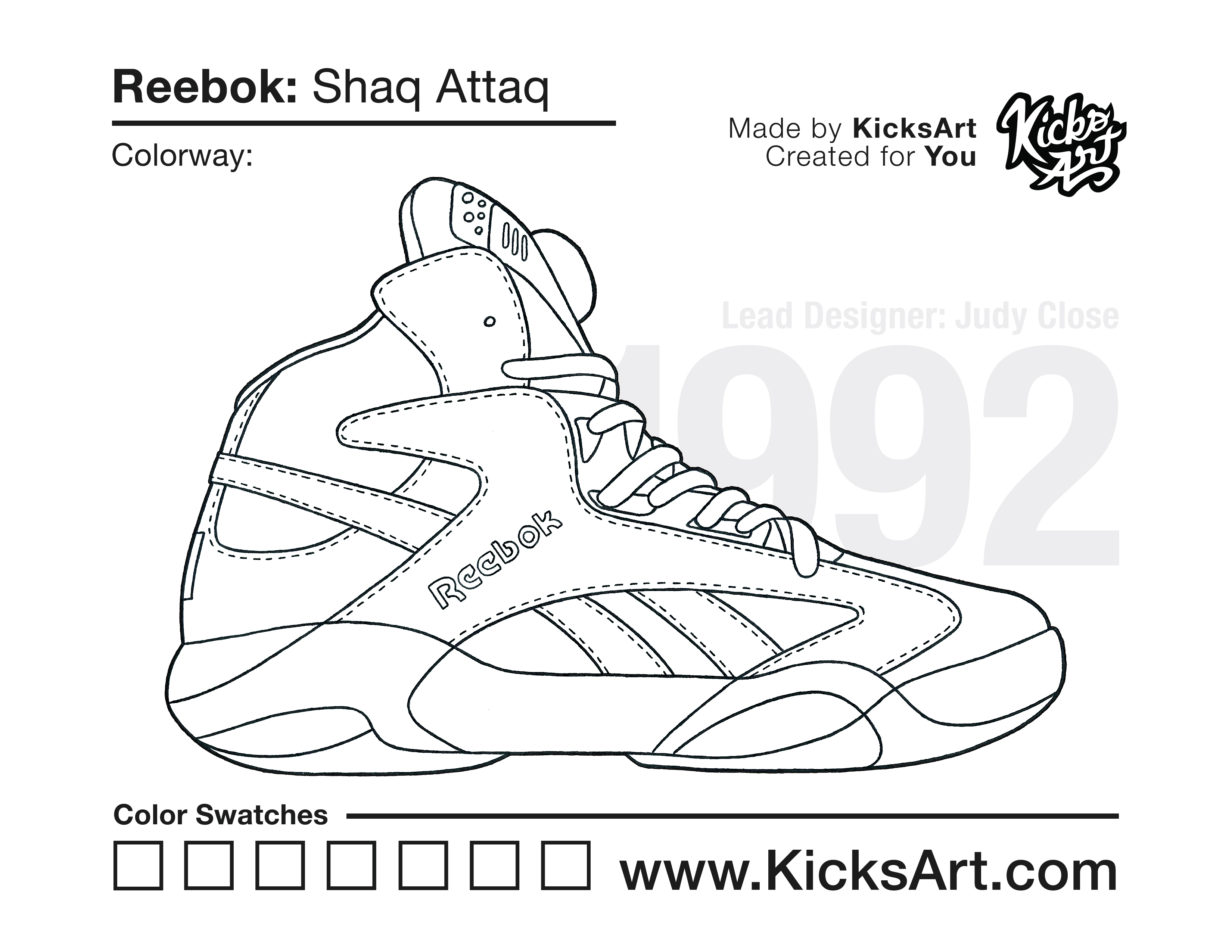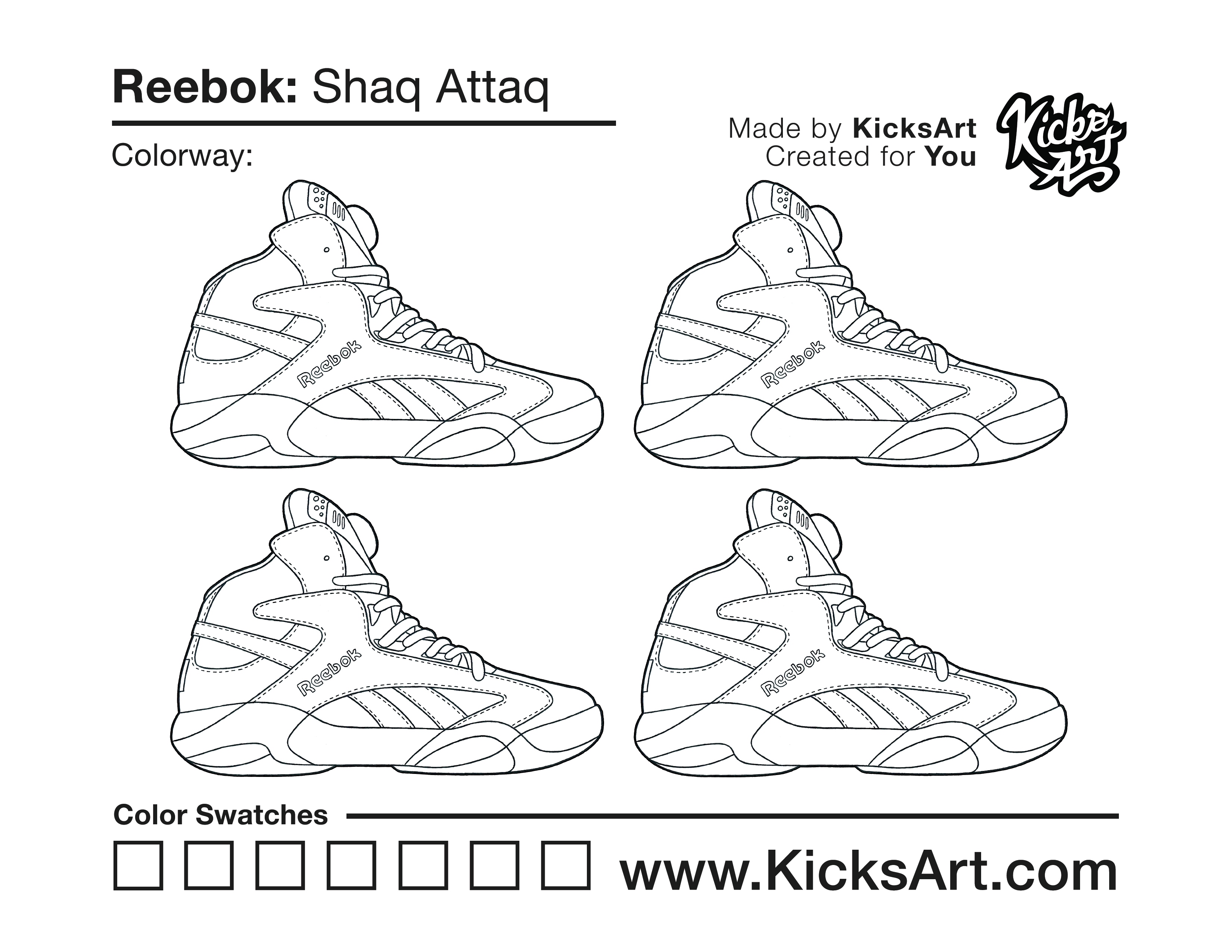 Reebok Shaq Attaq Sneaker Coloring Pages April 16, 2020 kicksart05 For any sneaker coloring page, click on the button above the image to start the instant download! FREE Download: Reebok Shaq Attaq Art materials can be expensive!Try out colorways on these smaller templates so your supplies can last longer! Reebok Shaq Attaq (4UP)